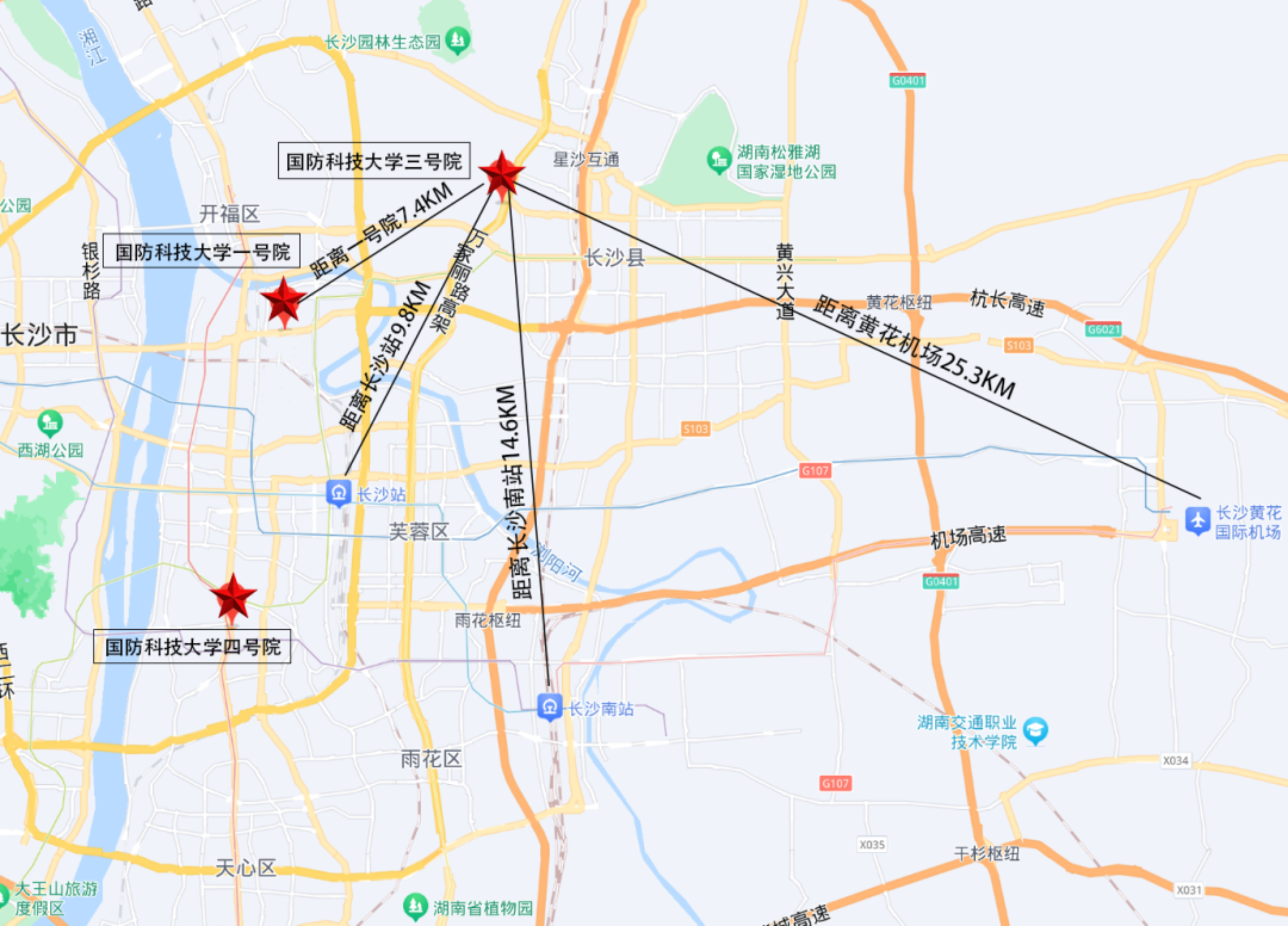 报到期间(8月28日8时-8月29日20时),学校将在长沙南站、长沙站、长沙黄花国际机场安排车辆接站。