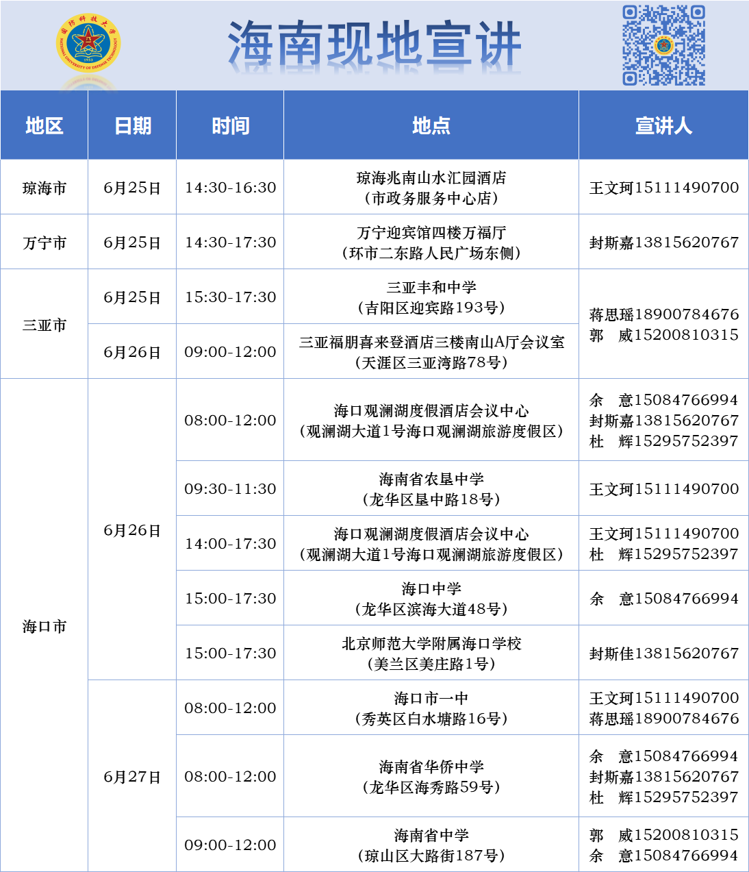 微信公众号原文链接:现地宣讲 | Beat365唯一官方网站本科招生现地宣讲预告(6.25-6.27)