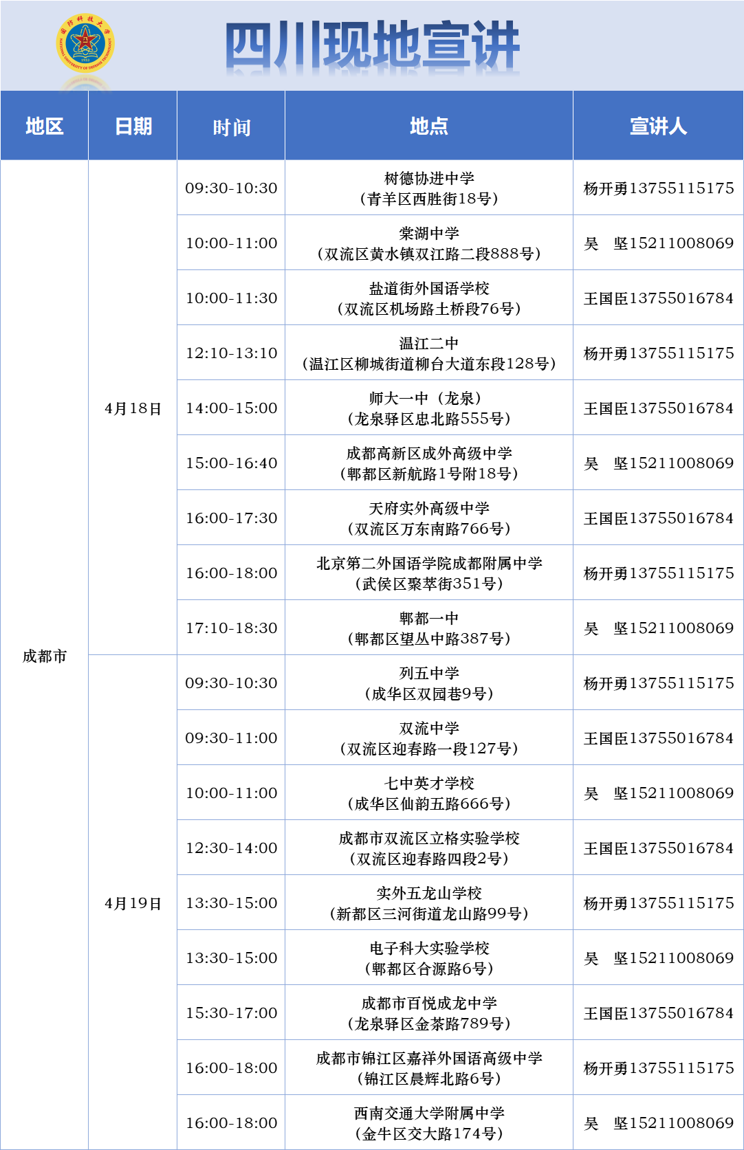 宣讲安排