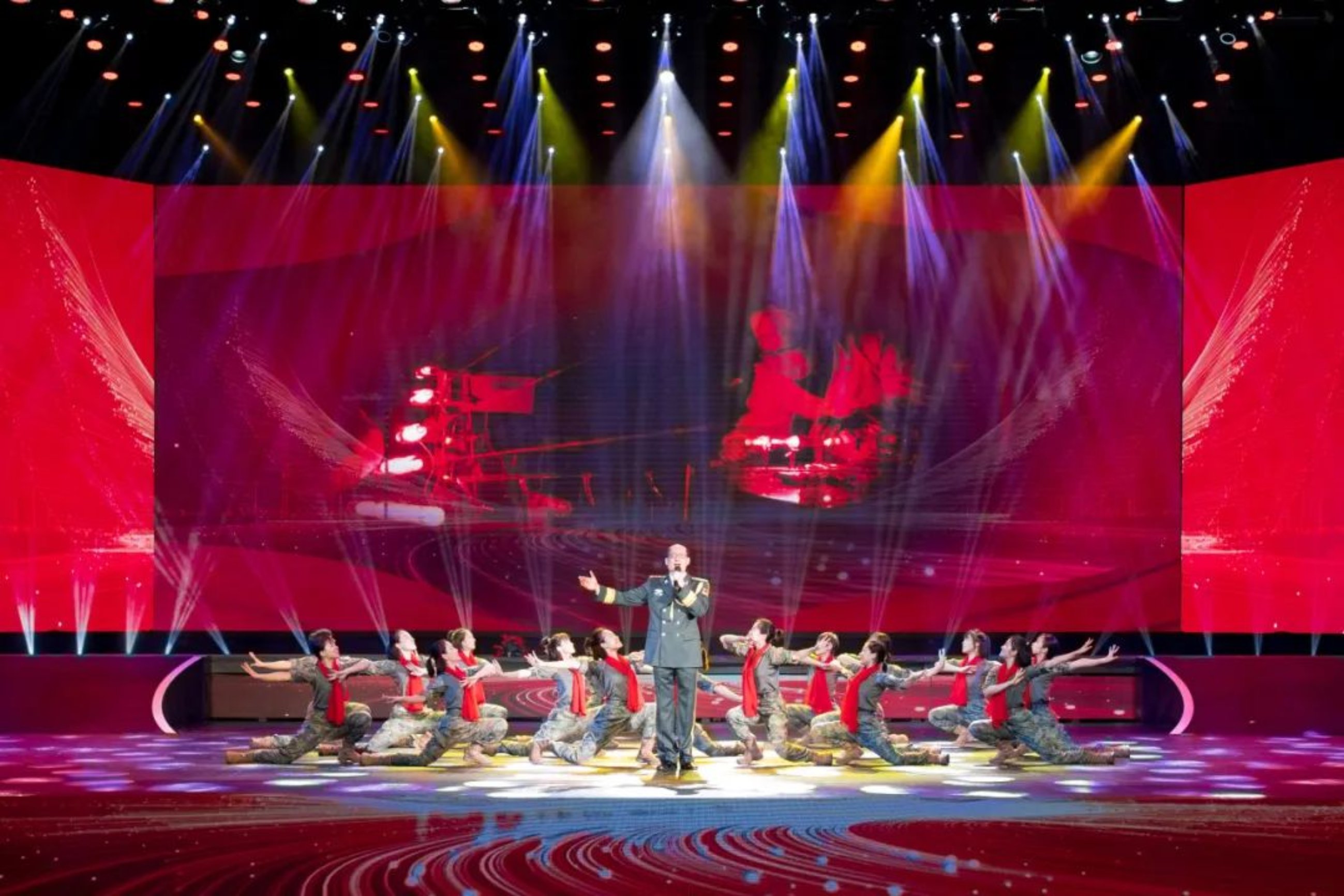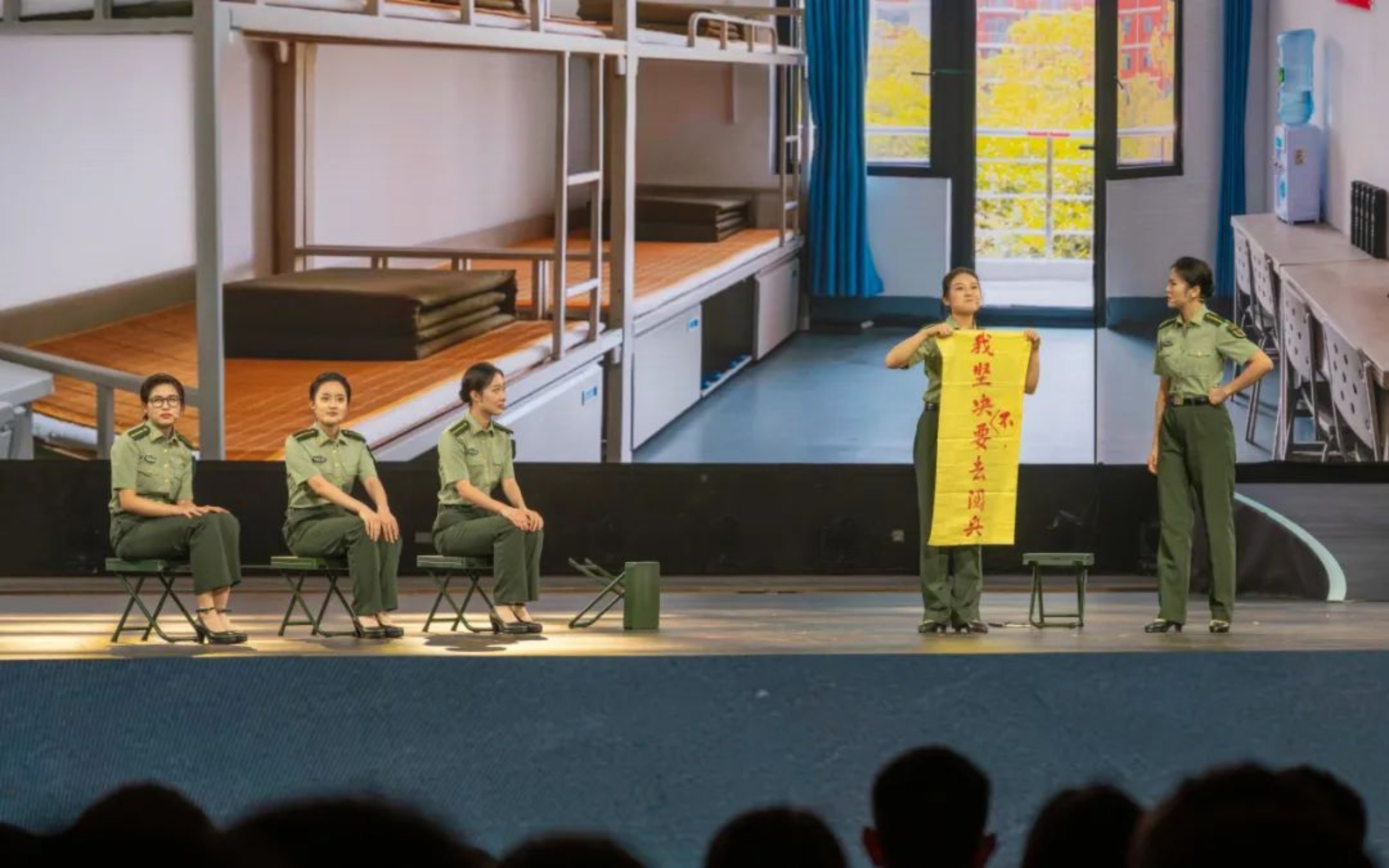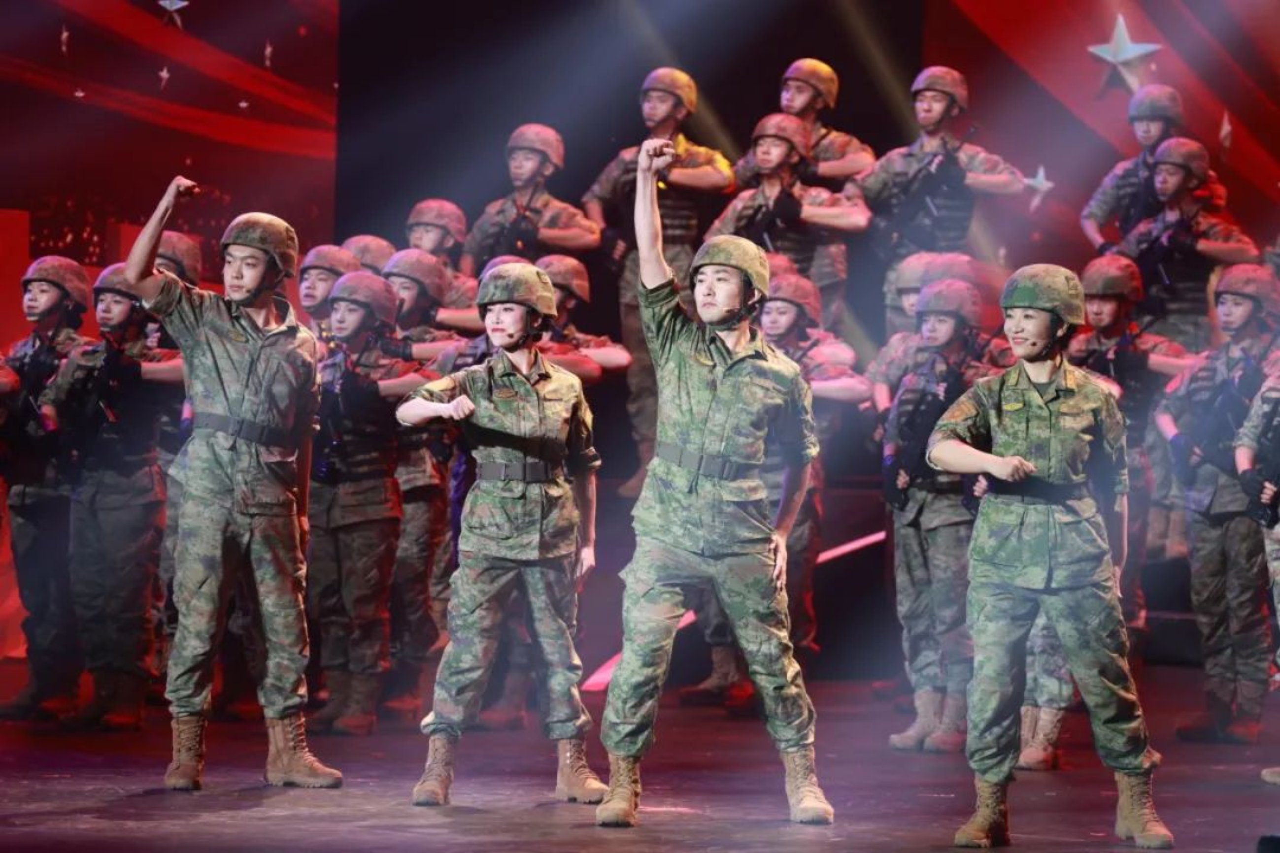 一代人有一代人的青春如火,一代人有一代人的奉献如歌。第二篇章“大美芳华”,串联组合歌舞、情景对话、多媒体节目,将一代代师生员工在学校学习工作生活的火热场景搬上舞台,展现各个历史时期青年学子矢志强军的猎猎风采。