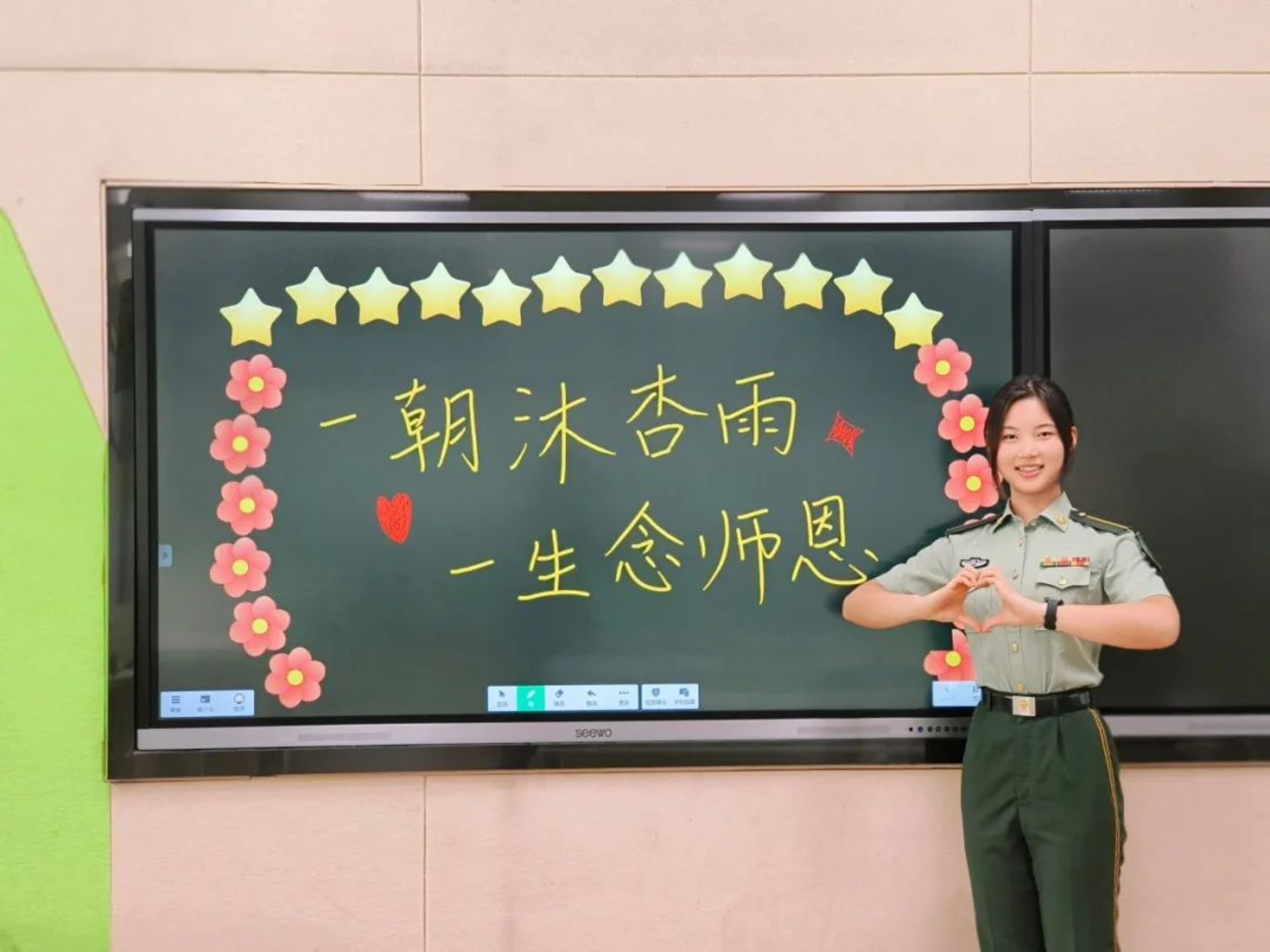 一身橄榄绿,教会我们强军的责任与担当;两袖拂清风,教育我们做人的原则和道理;三尺小讲台,手把手带我们走过春秋冬夏;感谢您,让我们成为有灵魂、有本事、有血性、有品德的新时代革命军人;感谢您,把自己的一生无私的投入强军兴军的教育事业。衷心祝愿所有教员们,节日快乐,身体健康,桃李满天下。