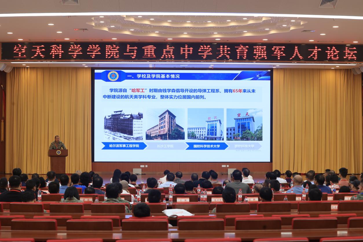 空天科学学院罗亚中院长以自身成长为例,生动讲述了学校办学育人的优势特色,号召广大高中一道为共同培育有能力、有担当的青年学生,并使之成长为家国情怀深厚、创新能力突出、堪当强军重任的国家栋梁而共同奋斗。
