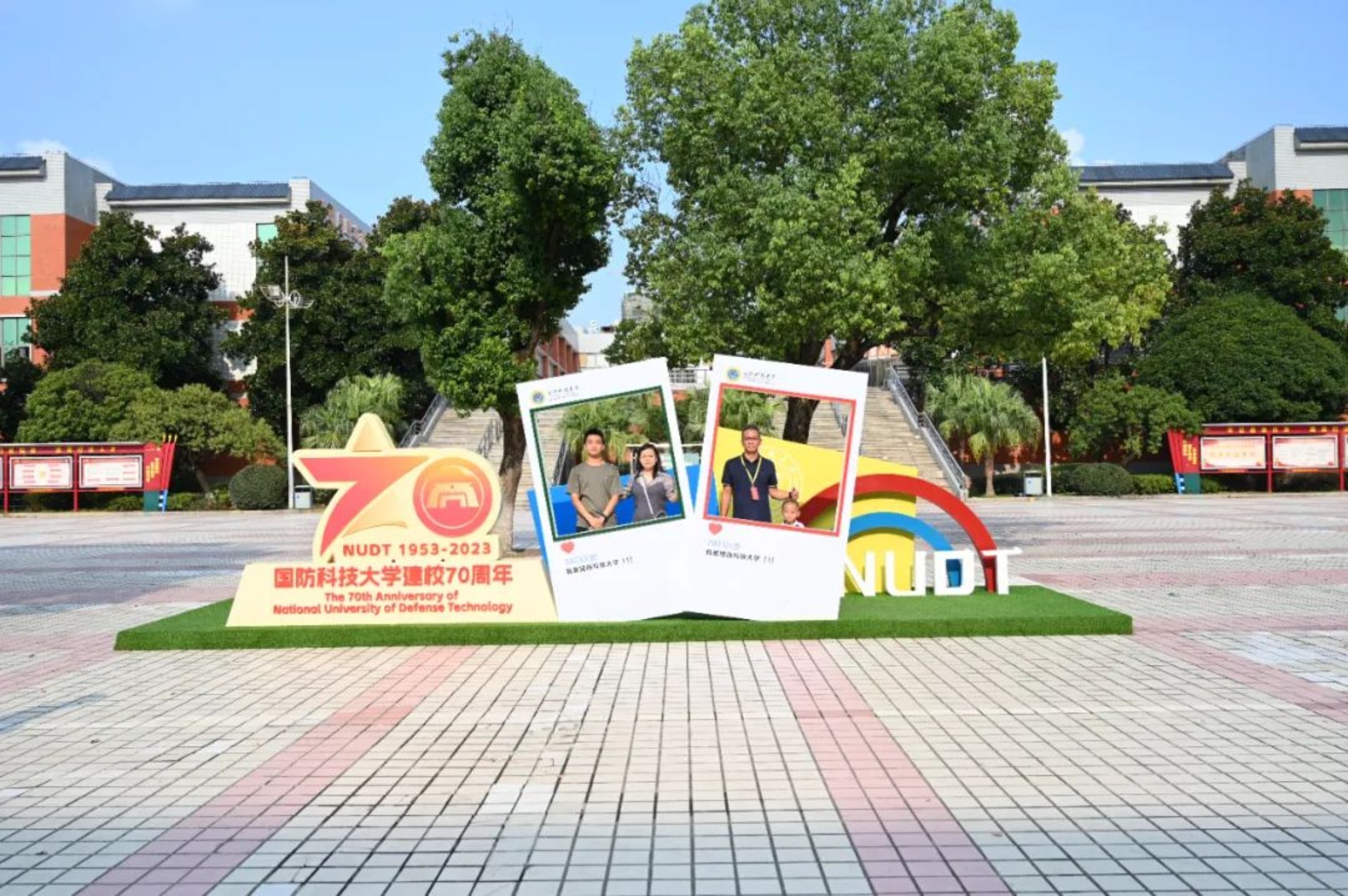 设置了带有建校70周年标识的打卡地