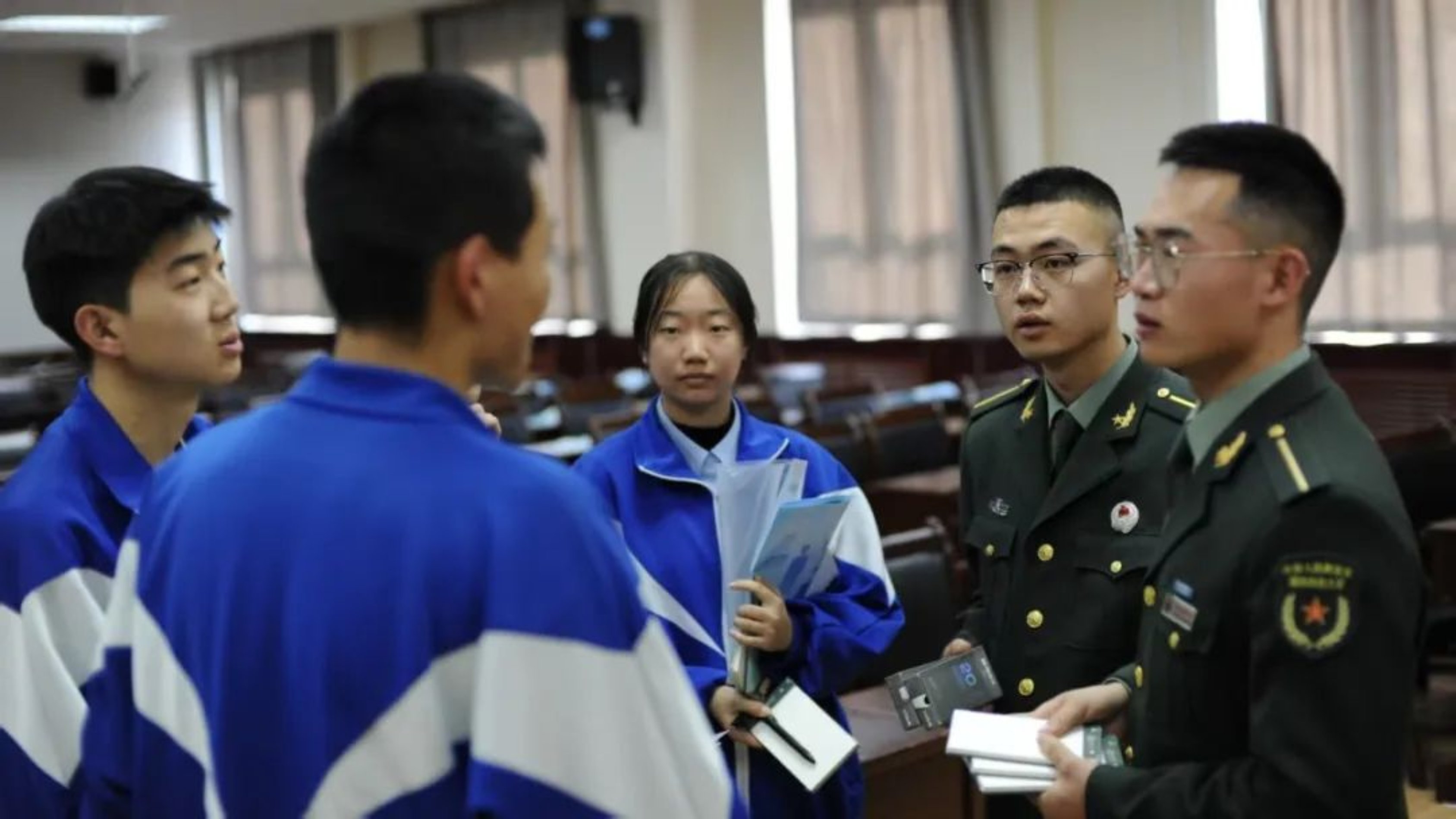 宣讲团首先看望了中学领导和老师。中学领导对学员回到母校感到由衷高兴,希望通过交流,能鼓励更多学生报考军校,投身强军兴国的伟大征程。