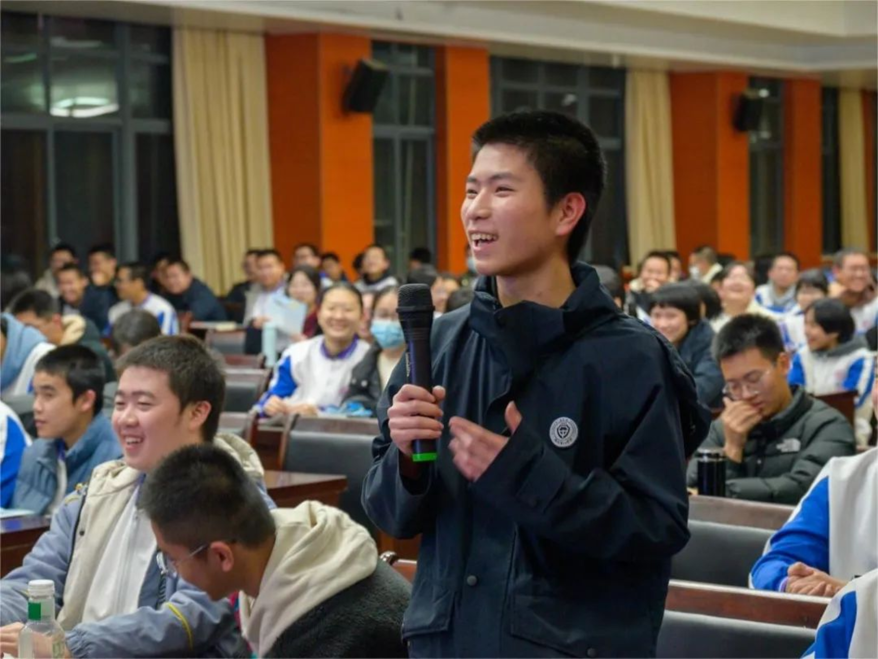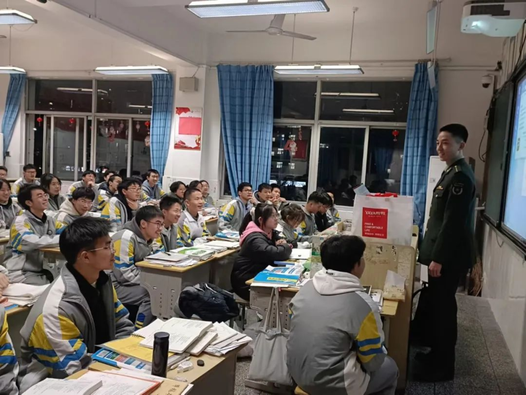 1月30日,在福建招生组老师们的带领下,生长军官本科学员黄熠杭回到母校福州高级中学针对重点班的同学开展专题宣讲。宣讲采取演示课件和播放视频相结合的形式,全方位立体地向高三的同学们讲解学校历史、人才培养、招生政策等方面内容,并结合个人生活vlog展示了科大学员风采。宣讲结束后,黄熠杭和学弟学妹们进行深入的交流,详细耐心地向前来咨询的同学们答疑解惑。