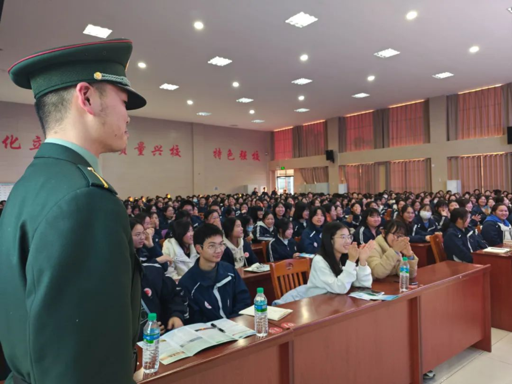 2月14日至15日,学校生长军官本科学员薛浚铧和陈欣怡回到母校南安第一中学,向母校领导及老师汇报成长经历,并面向高三学子开展招生宣讲。汇报宣讲团成员进行了深入宣讲,内容涵盖军人情怀、青年使命、学校现状、发展前景、招生情况和优秀校友等内容,并耐心解答同学们疑惑问题,鼓励同学们为理想目标而努力奋斗,现场反响热烈。