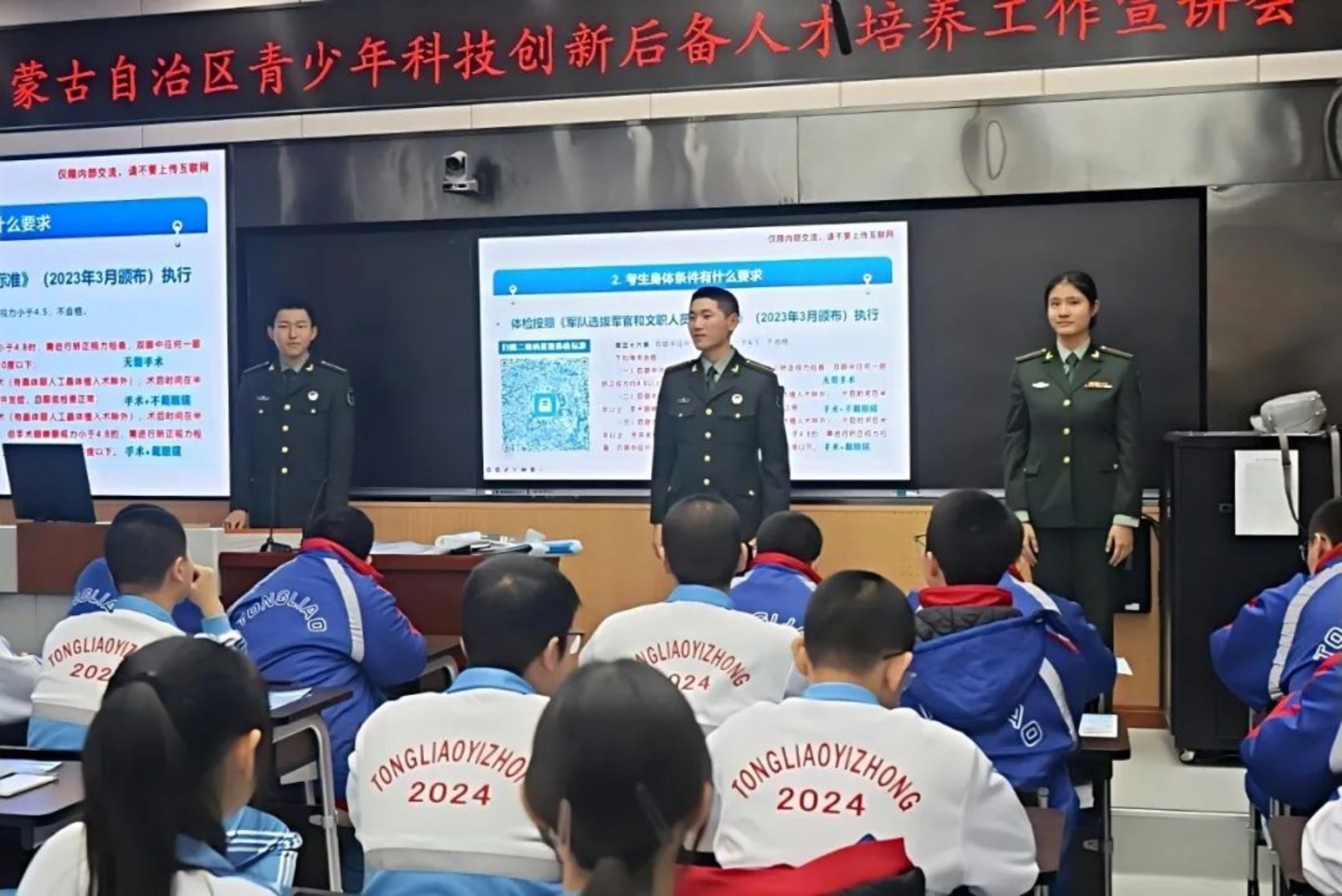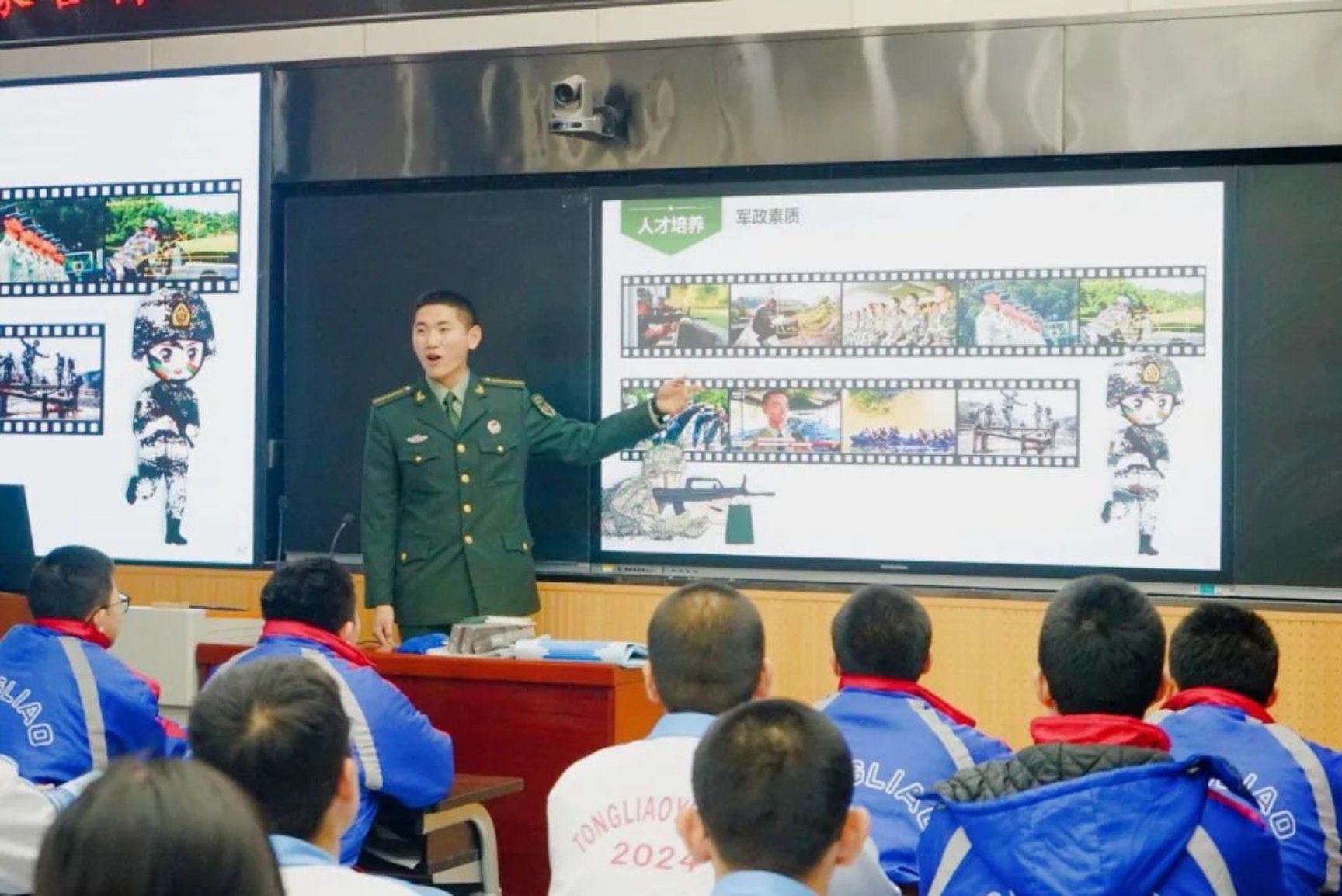 通辽一中高三班主任张冰:看着曾经在课堂上诵读“黄沙百战穿金甲,不破楼兰终不还”的学生们,如今身着戎装、英姿飒爽地回到母校,我的心中涌动着难以言表的欣慰。在宣讲过程中,学生们全神贯注地凝视着投影屏幕,不时低头认真记录,眼中闪烁着求知的光芒,互动环节更是气氛热烈。这不仅是一次简单的宣讲,更是点燃青春梦想的薪火传递,让强军报国的种子在年轻的心灵中悄然生根。我相信他们未来必将茁壮成长,绽放出绚烂的光彩。