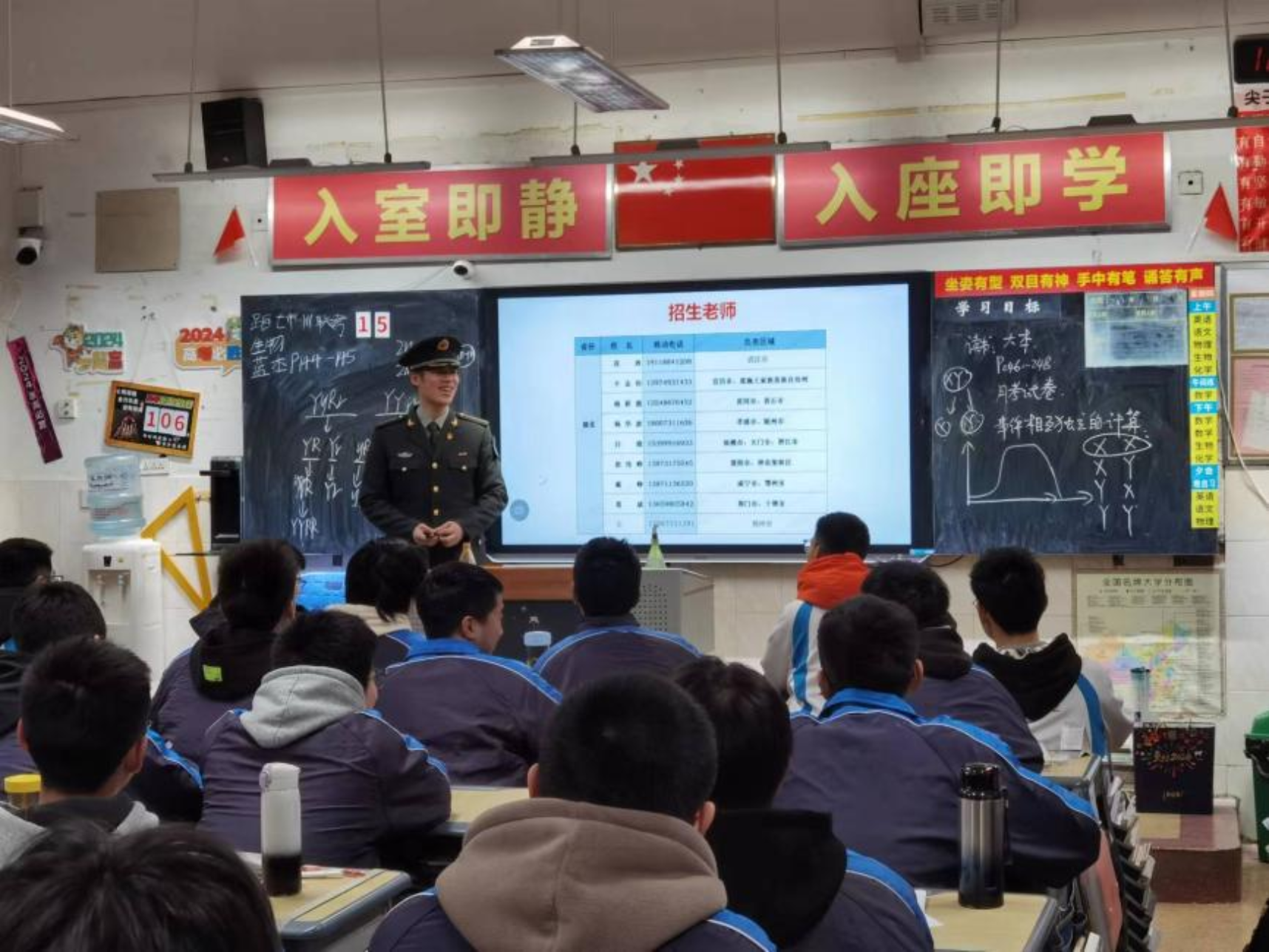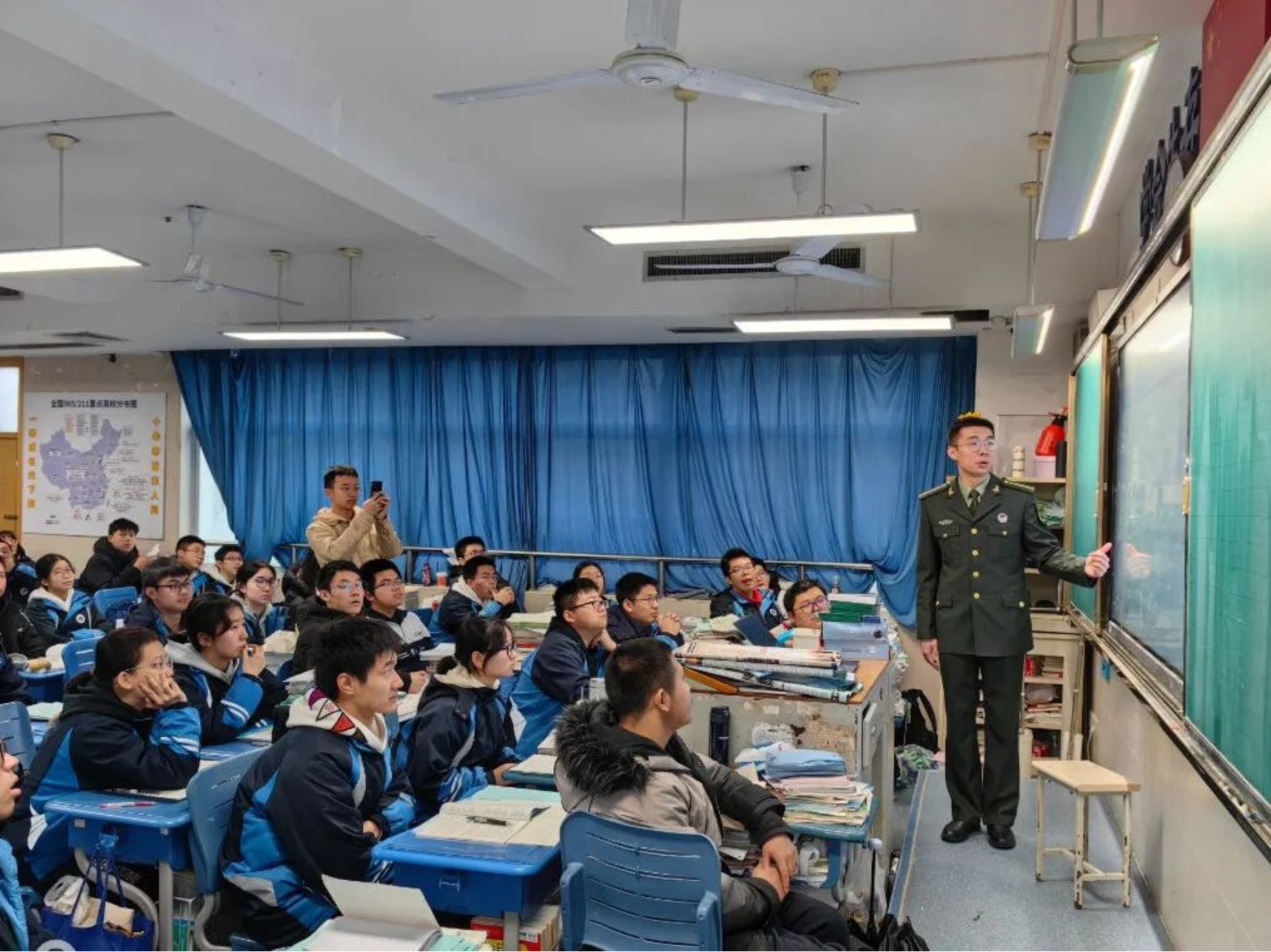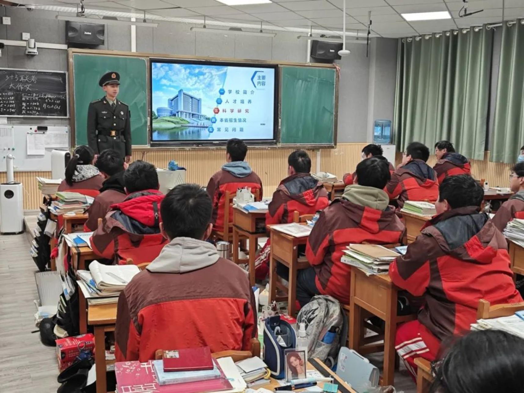 1月31日,学校生长军官本科学员苏伟航一行来到宁乡市实验中学励志部开展了一场精彩纷呈的宣讲活动,宣讲覆盖实验中学重点班。宣讲团首先从国防科大的建校历史、办学理念和发展现状等方面进行了详细介绍,重点解读在湖南省的招生政策,使同学们对科大有了更加全面深入的了解,为有意报考的同学们提供了指导。宣讲结束后,同学们就高考报名中存在的困惑与宣讲团进行了面对面交流,宣讲团耐心解答,并鼓励同学们潜心学习的同时提高身体素质。