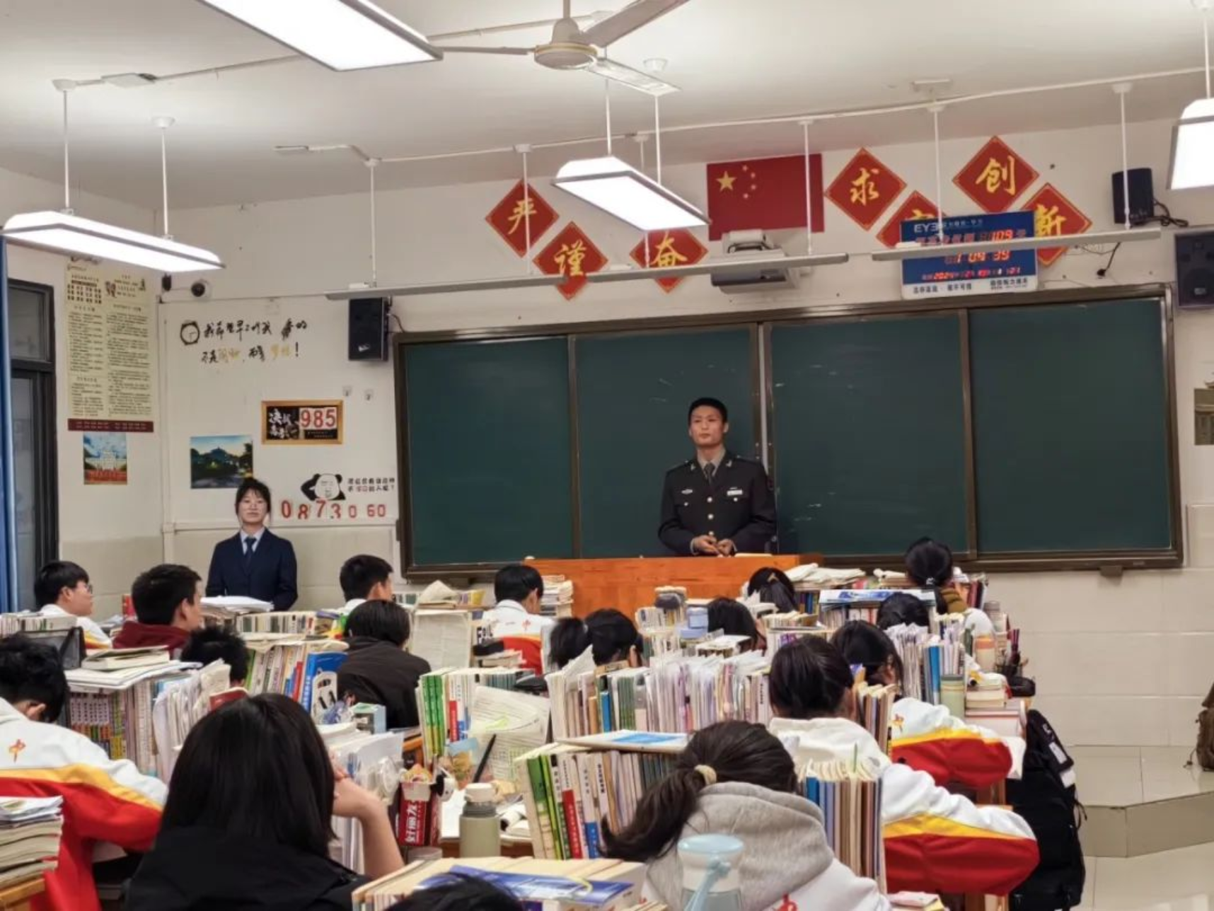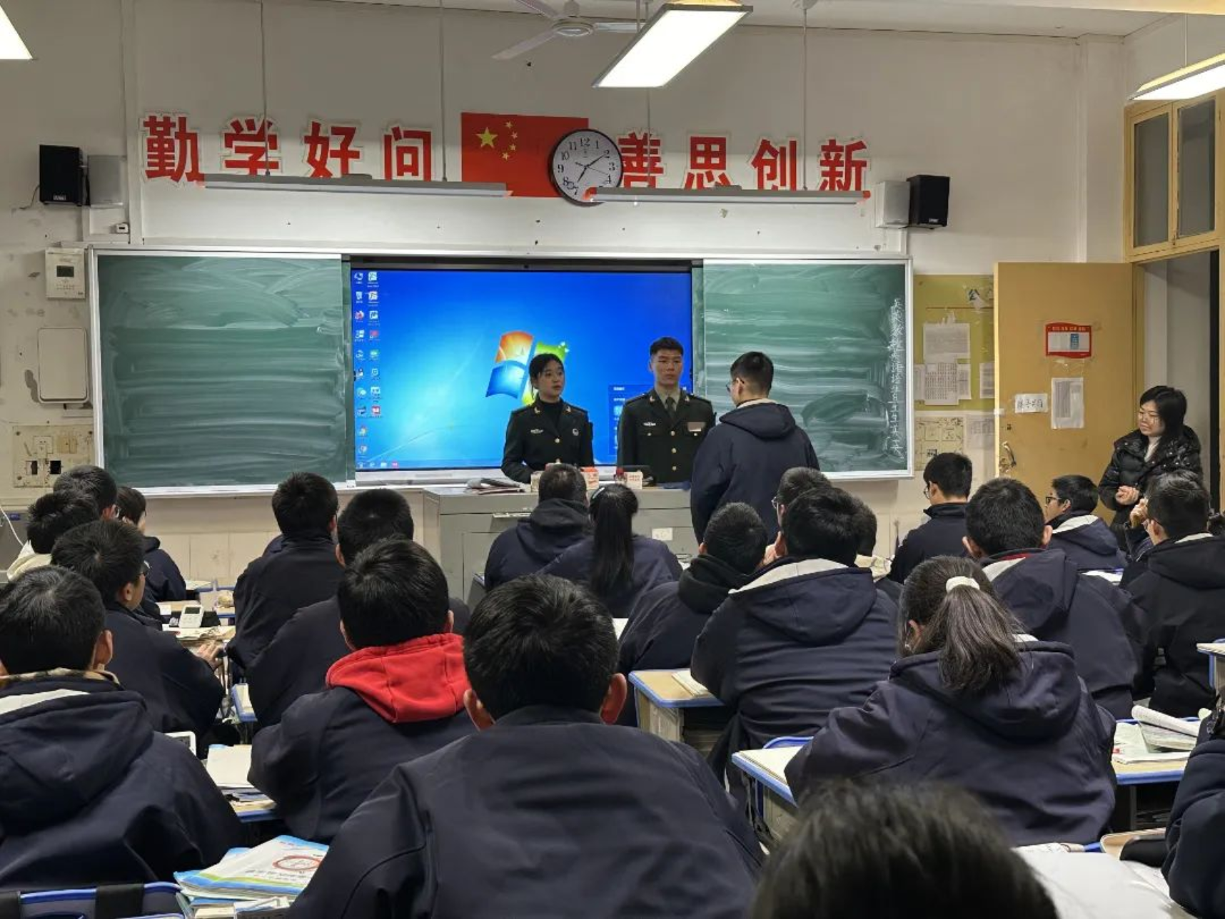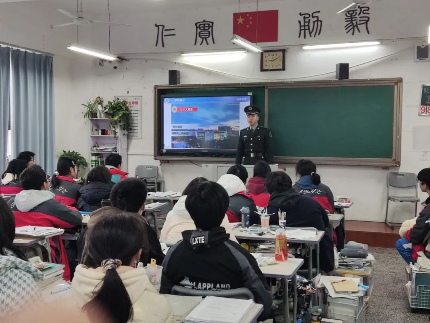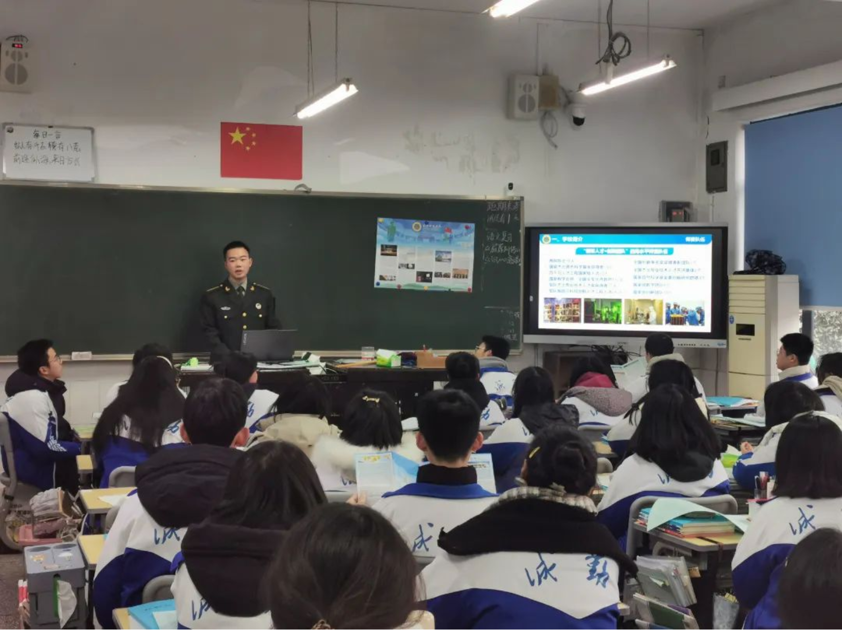 1月31日,学校生长军官本科学员李润庭返回母校长沙市实验中学进行宣讲。为让同学们对国防科大有更直接的认识,李润庭向同学们介绍了科大的人才培养模式以及丰富多彩的军校生活,引发同学们对科大的憧憬与向往。宣讲结束后,李润庭耐心向学弟学妹介绍了科大报考情况,并交流学习经验。