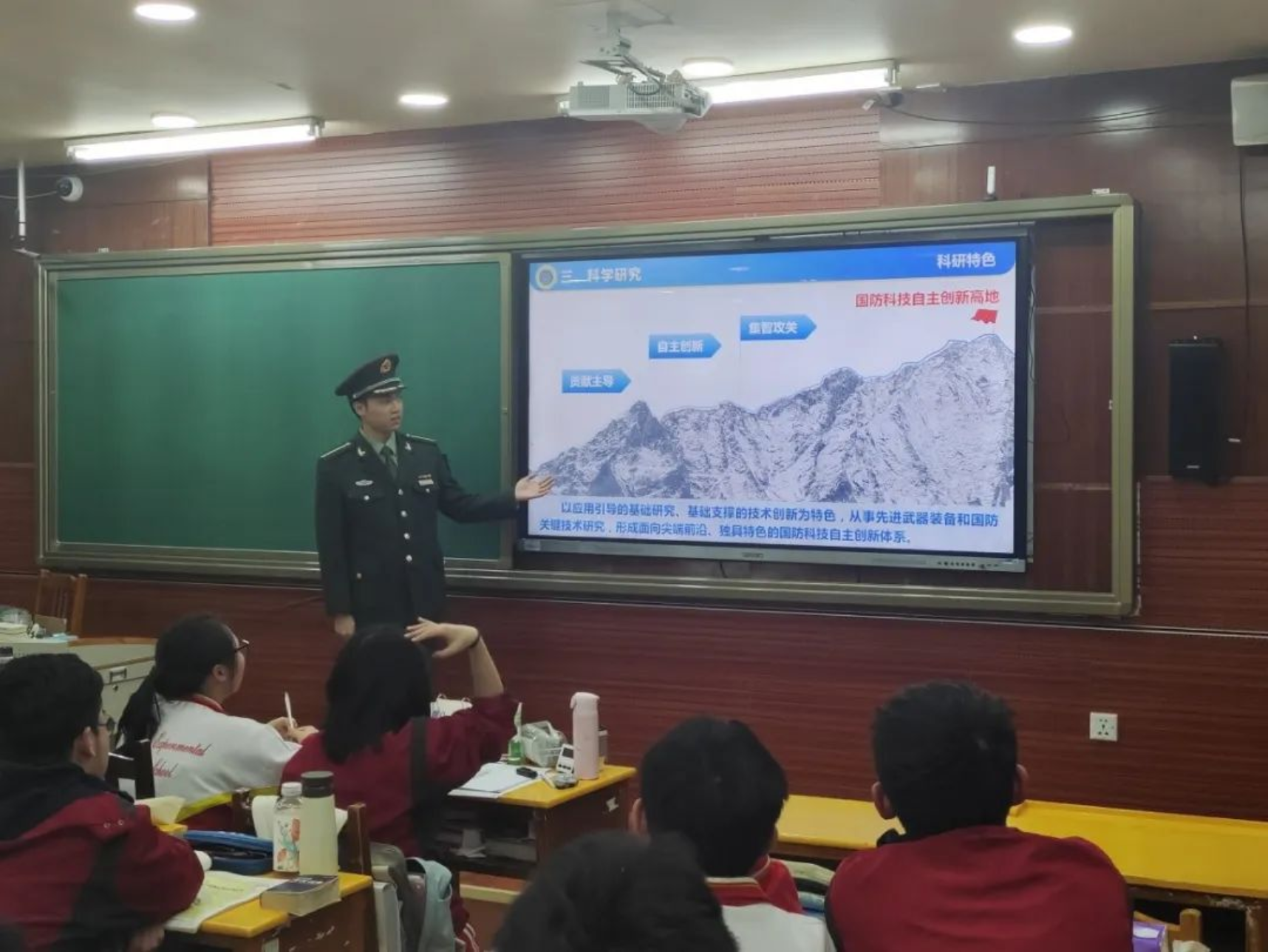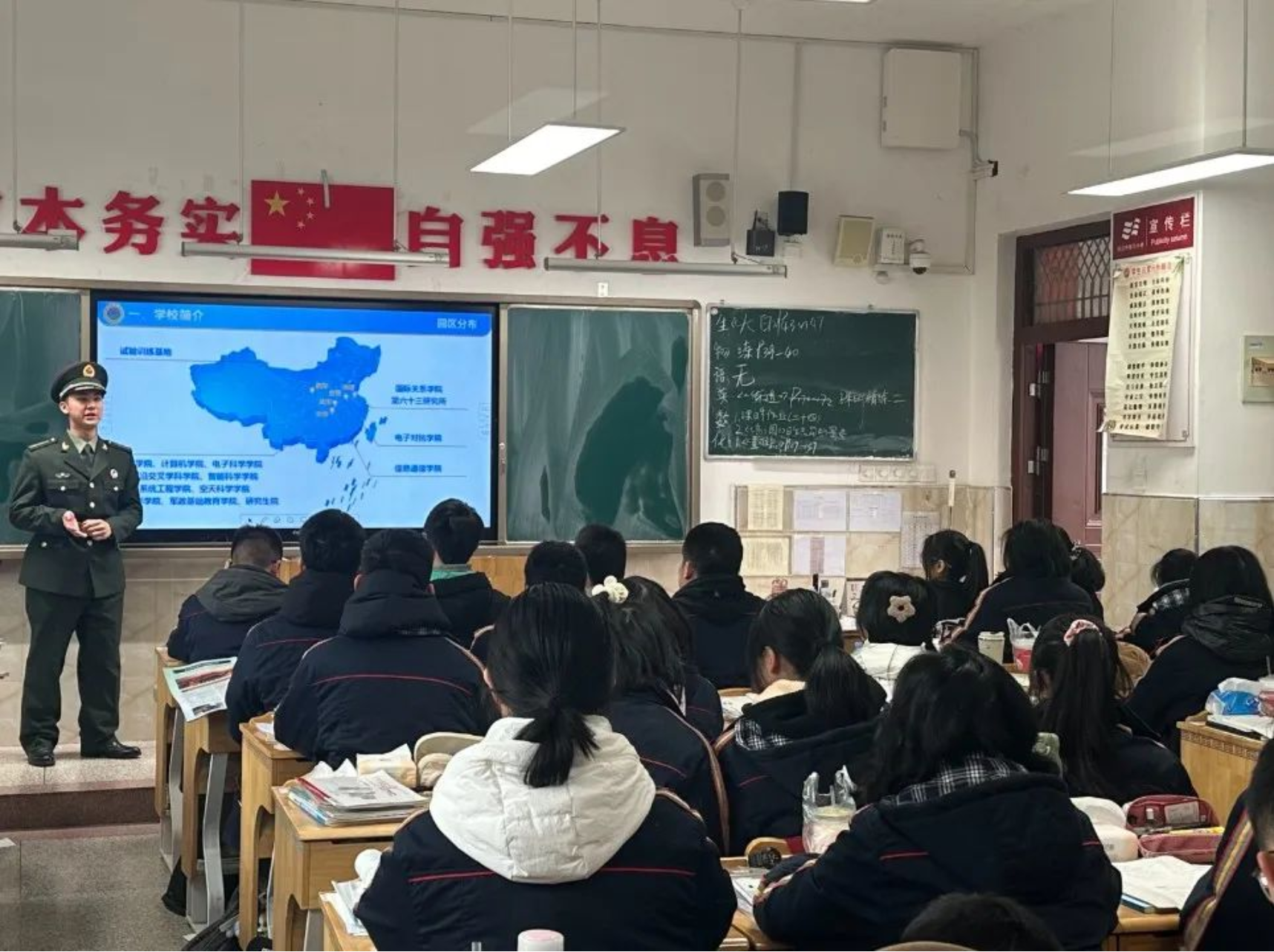 寒假期间,国防科大“母校中学行”汇报宣讲活动火热进行,近2500名学员深入1200余所母校中学,汇报成长历程、畅谈军校生活、分享学习心得,为学弟学妹解惑引路,鼓励优秀学子积极投身强军事业。