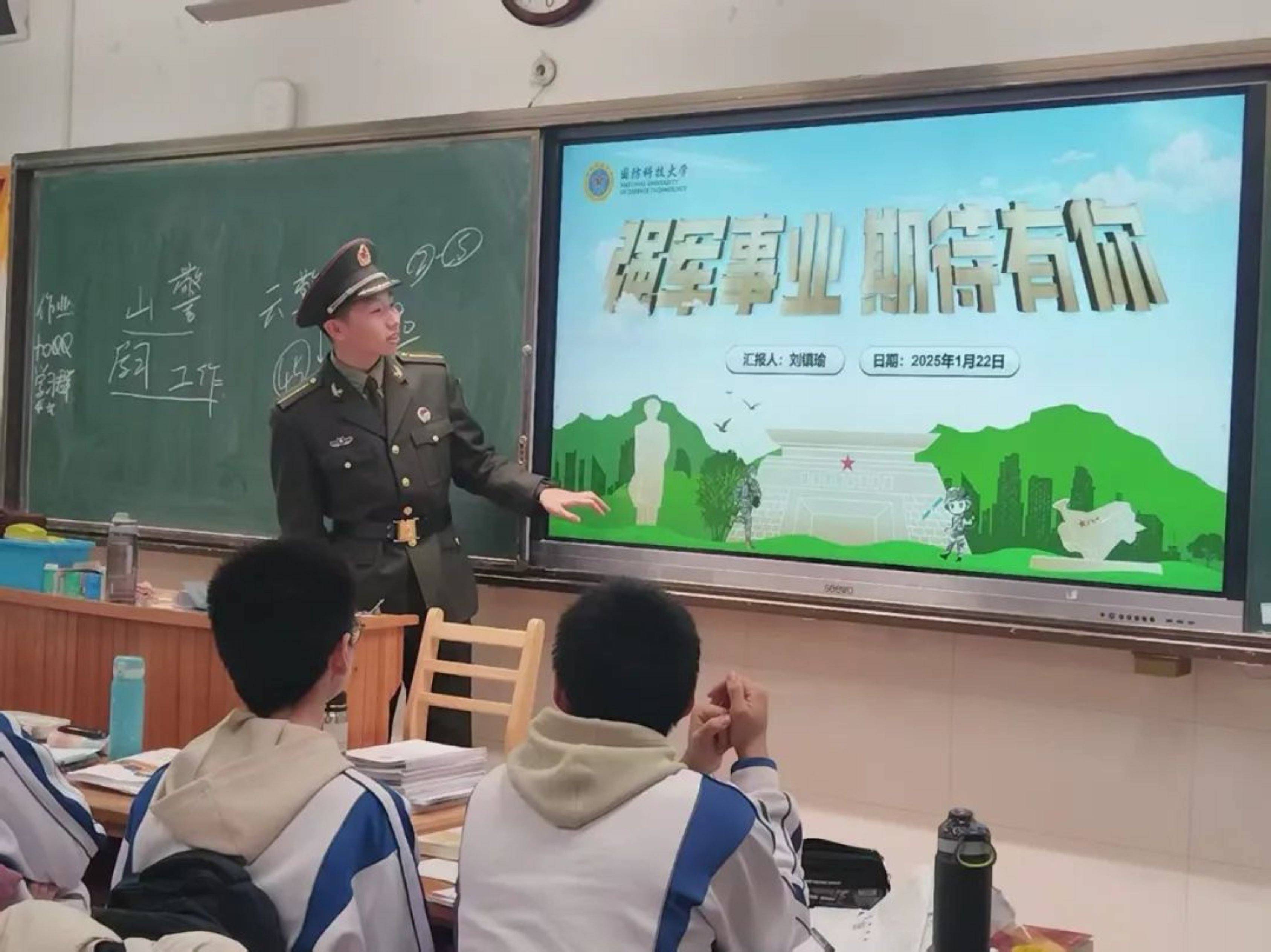 在宣讲现场,我内心满是传承的力量。曾几何时,我也如台下的学弟学妹们一般,对军旅生活满怀憧憬。如今,我已成为国防科大的一员,站在这里为他们答疑解惑。我们凭借努力踏上军旅路,用青春与热血保家卫国。我坚信,在我们之后,定会有更多热血青年投身国防,接过接力棒,续写属于他们的荣耀篇章。
