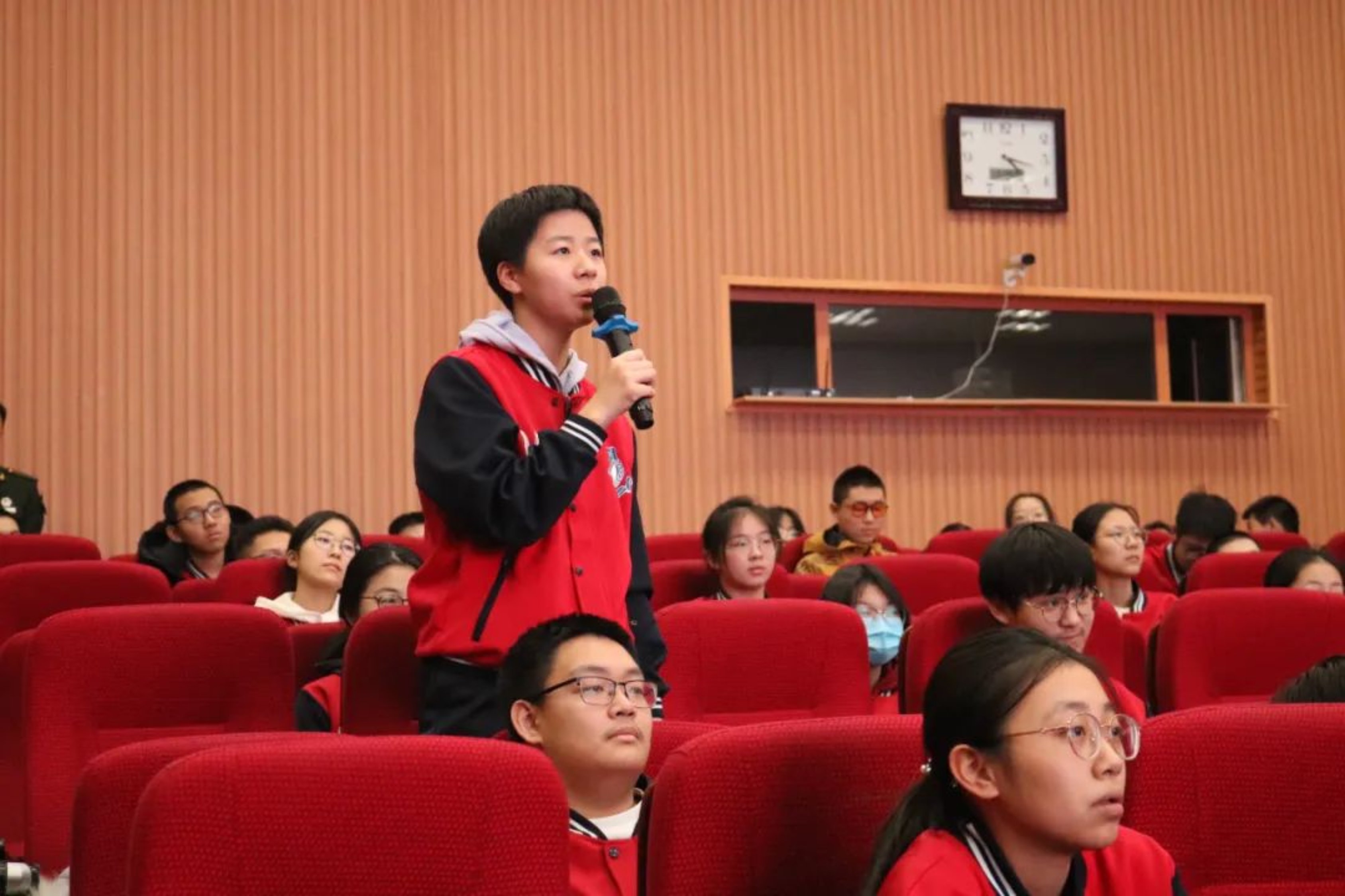 活动现场,闫鸿飞详细介绍了国防科大概况、人才培养模式、科学研究成果、河北省招生政策等,丰富的讲解内容激发了同学们对国防科大的向往;张子晗结合自身在国防科大的学习、训练与生活经历,为同学们描绘了一个生动立体的科大。交流互动环节,同学们踊跃举手提问,对国防科大的招生政策、专业设置、未来发展方向等问题表现出浓厚的兴趣。两位学长用自己的亲身经验为同学们答疑解惑,让同学们对科大有了更直观的认识,激励大家勇敢追梦,积极投身国防事业。