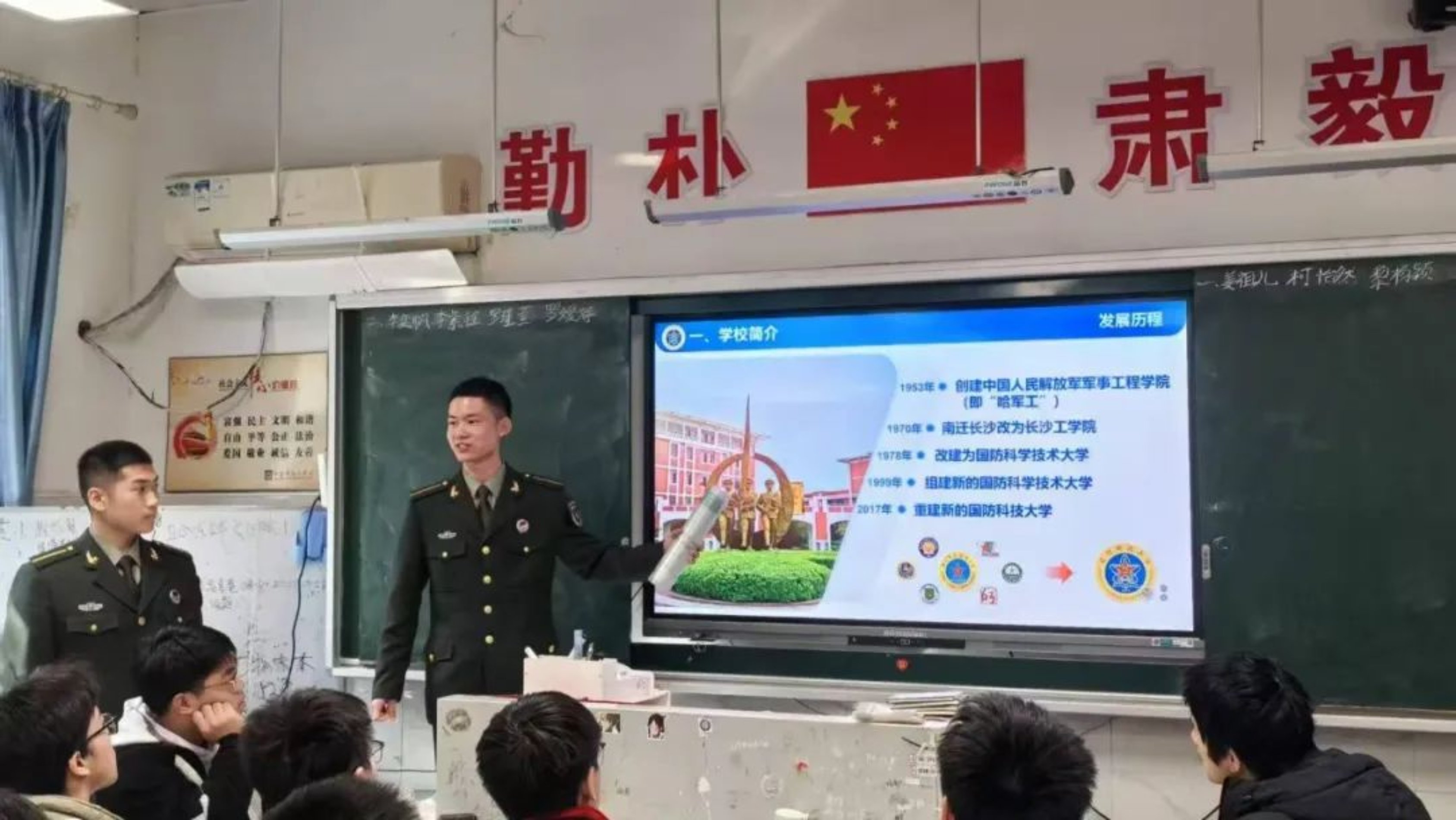 近日,由国防科大生长军官本科学员闫鸿飞、张子晗组成的“筑梦高地”宣讲团回到河北省武安市第一中学开展宣讲活动。