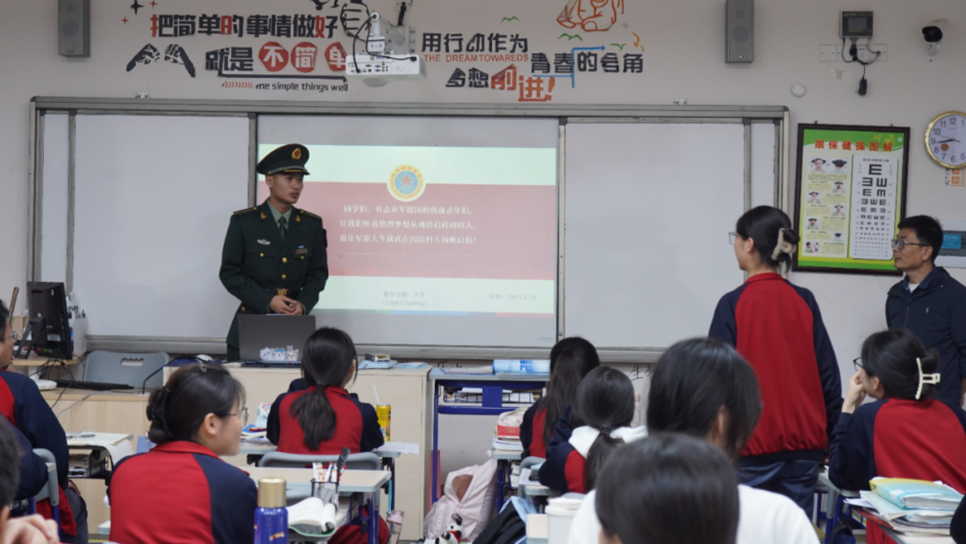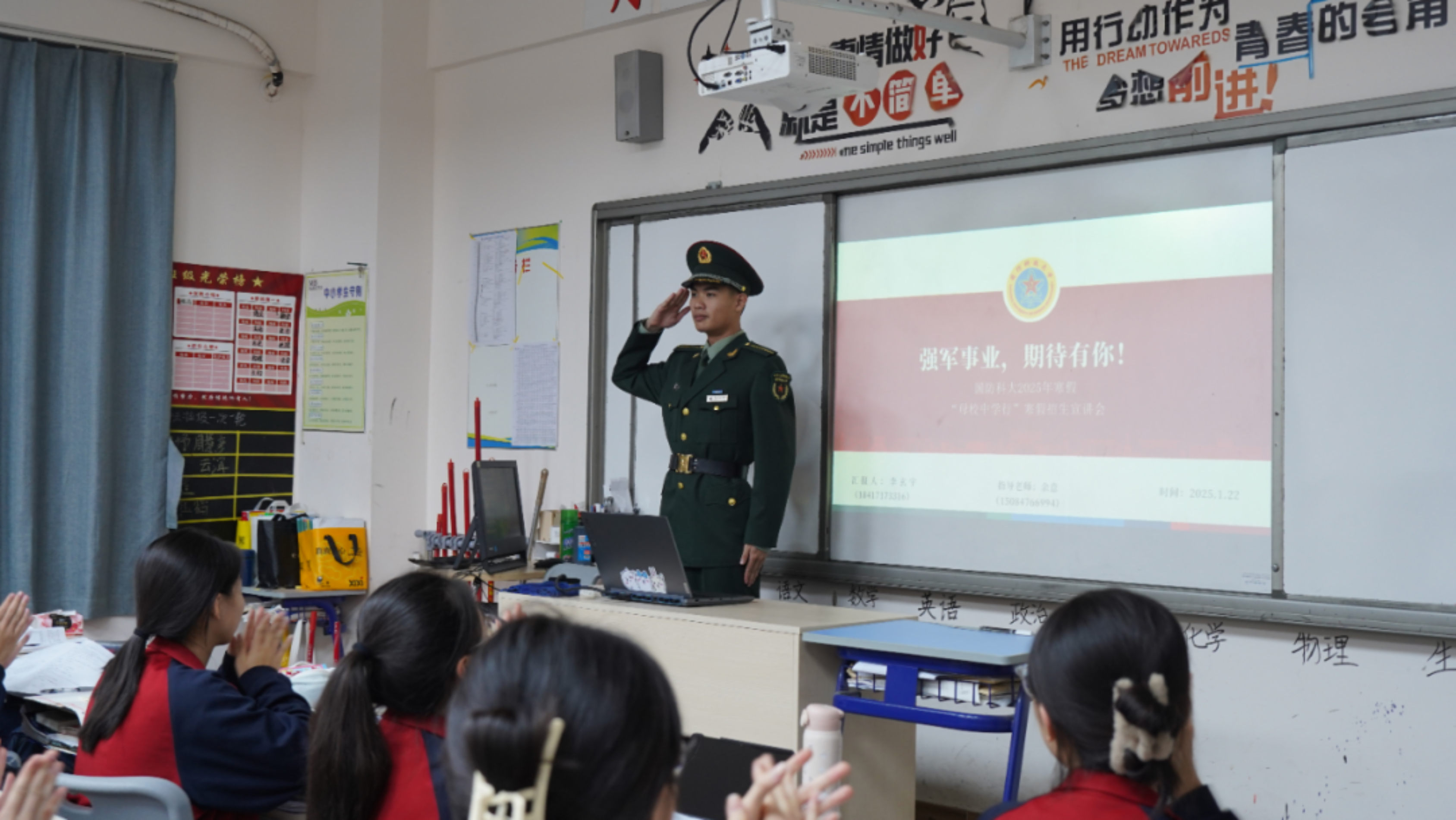我很珍惜这次母校宣讲的机会,我耐心全面地分享有关军校生活的点滴,从严格的军事训练到深厚的战友情谊,每一点都深深触动台下的同学们。在这个过程中,我深刻感受到了肩上所承担的责任之重。