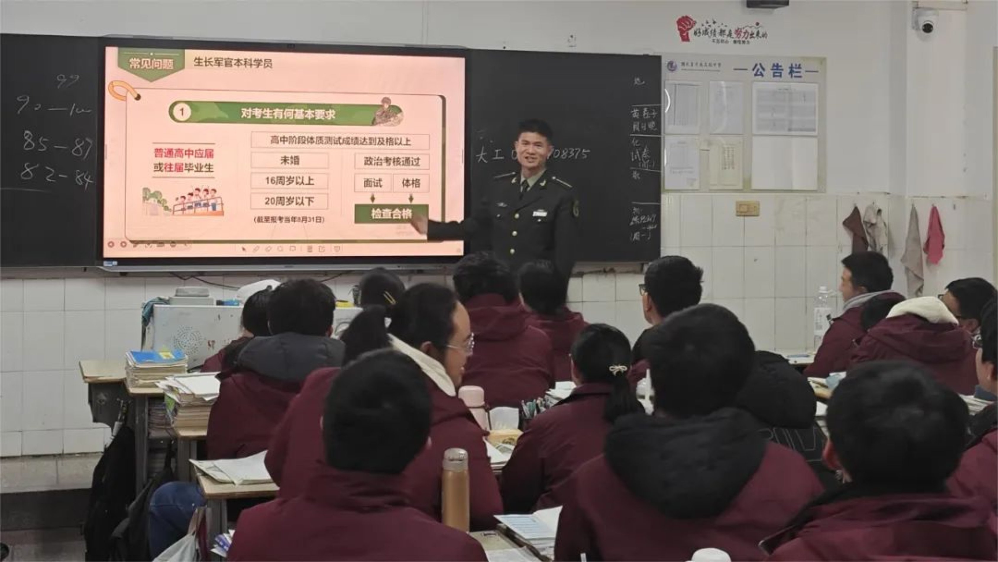 三年前,我带着报国从军的梦想从柳州铁一中毕业,到如今我穿上军装再次站上铁一的讲台。看着讲台下那一双双对未来充满期待的眼睛,我深刻感受到作为军人的自豪感和自信心。这次回到母校宣讲,不仅激励了同学们报考国防科大的信心和决心,也坚定了我从军的初心和信念。