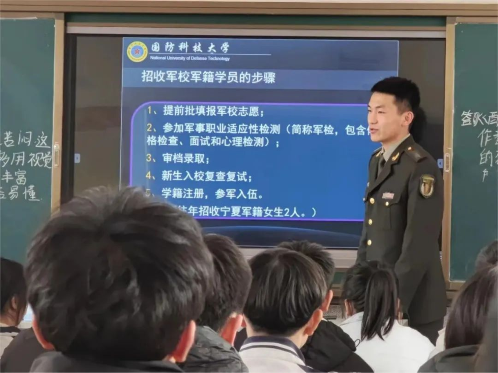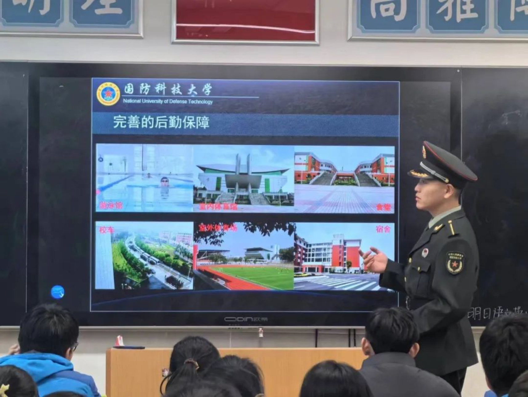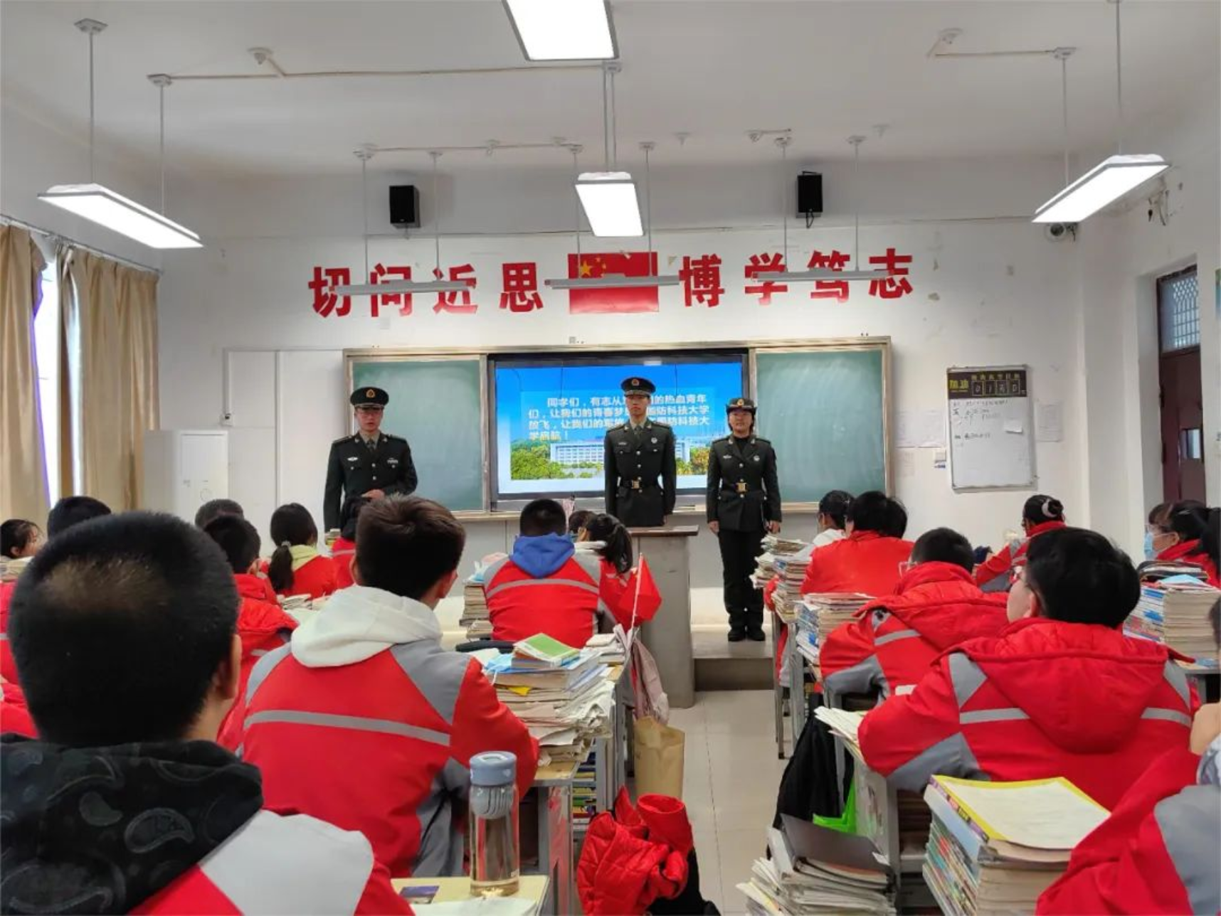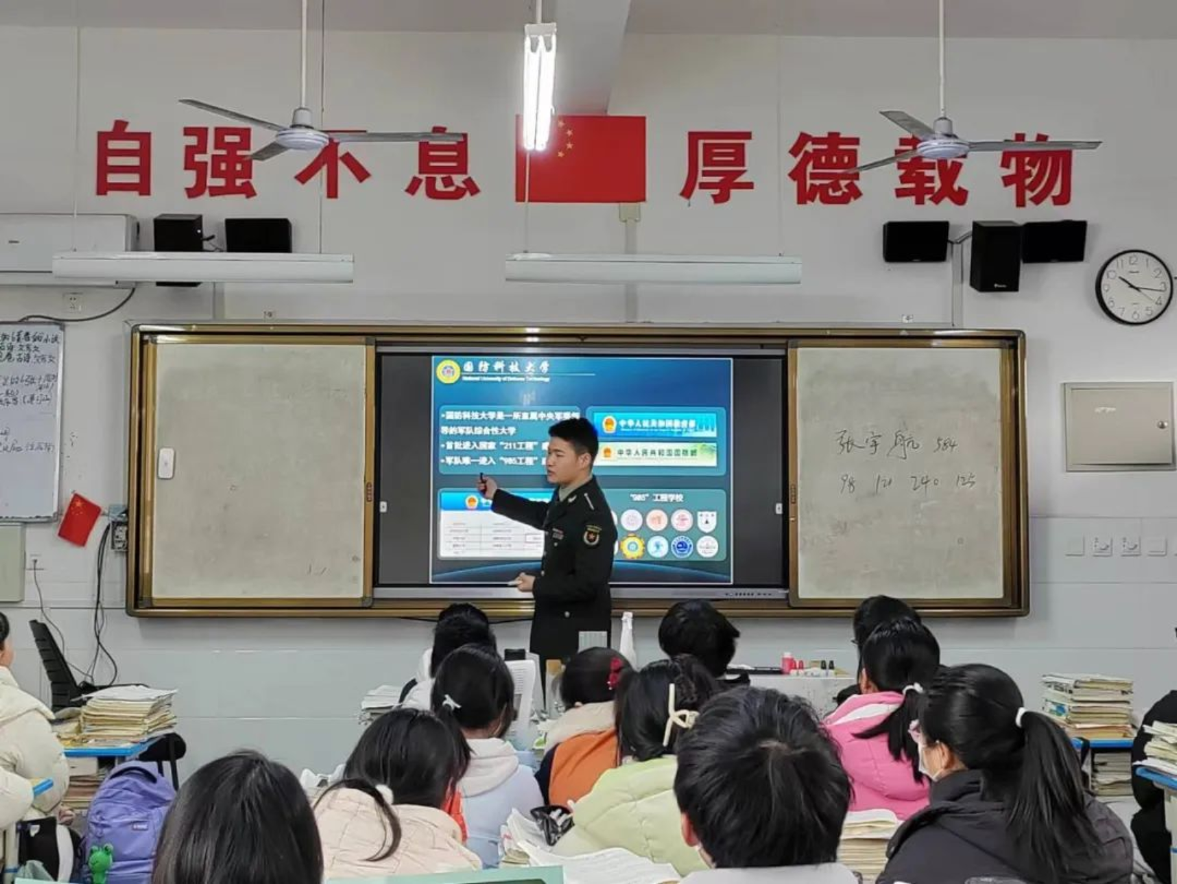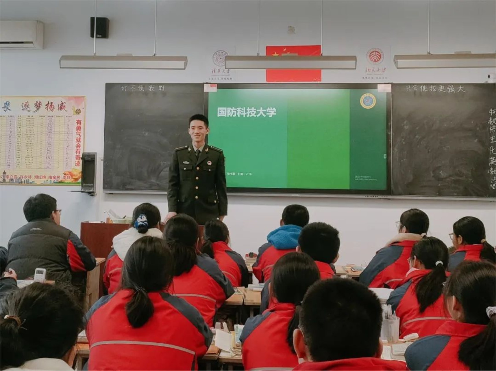 寒假期间,国防科大“母校中学行”汇报宣讲活动火热进行,近2500名学员深入1200余所母校中学,汇报成长历程、畅谈军校生活、分享学习心得,为学弟学妹解惑引路,鼓励优秀学子积极投身强军事业。