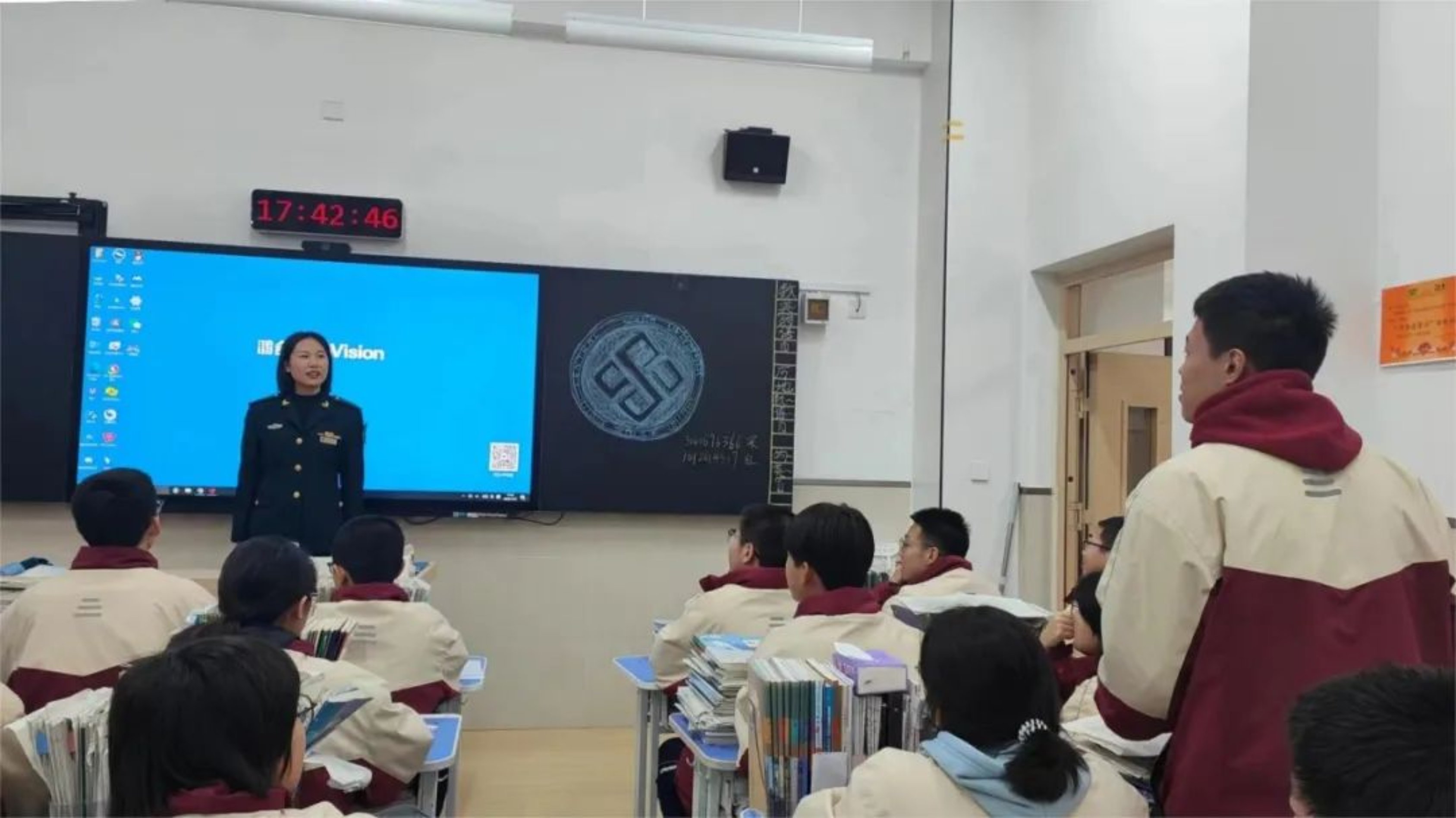 在报告厅,吕嘉城通过宣传视频与宣讲课件,生动展现国防科大部分学科的建设成果以及学校实验室与训练场馆场景。在各班教室,吕嘉城结合自身经历讲述“从泰中学子到军校学员”的成长故事,回答同学们关于训练和学习的相关问题,并针对军检、面试等问题提供建议。