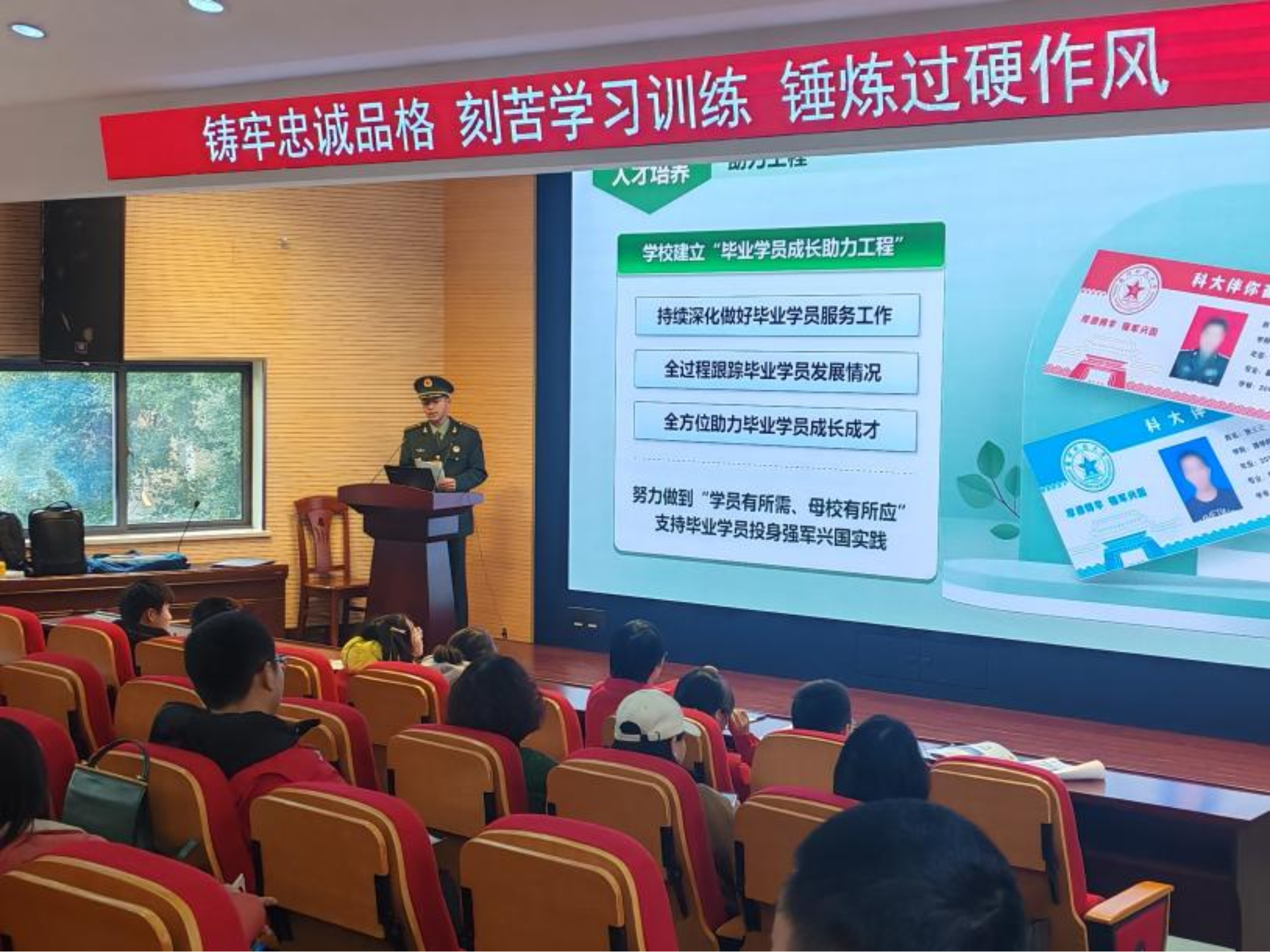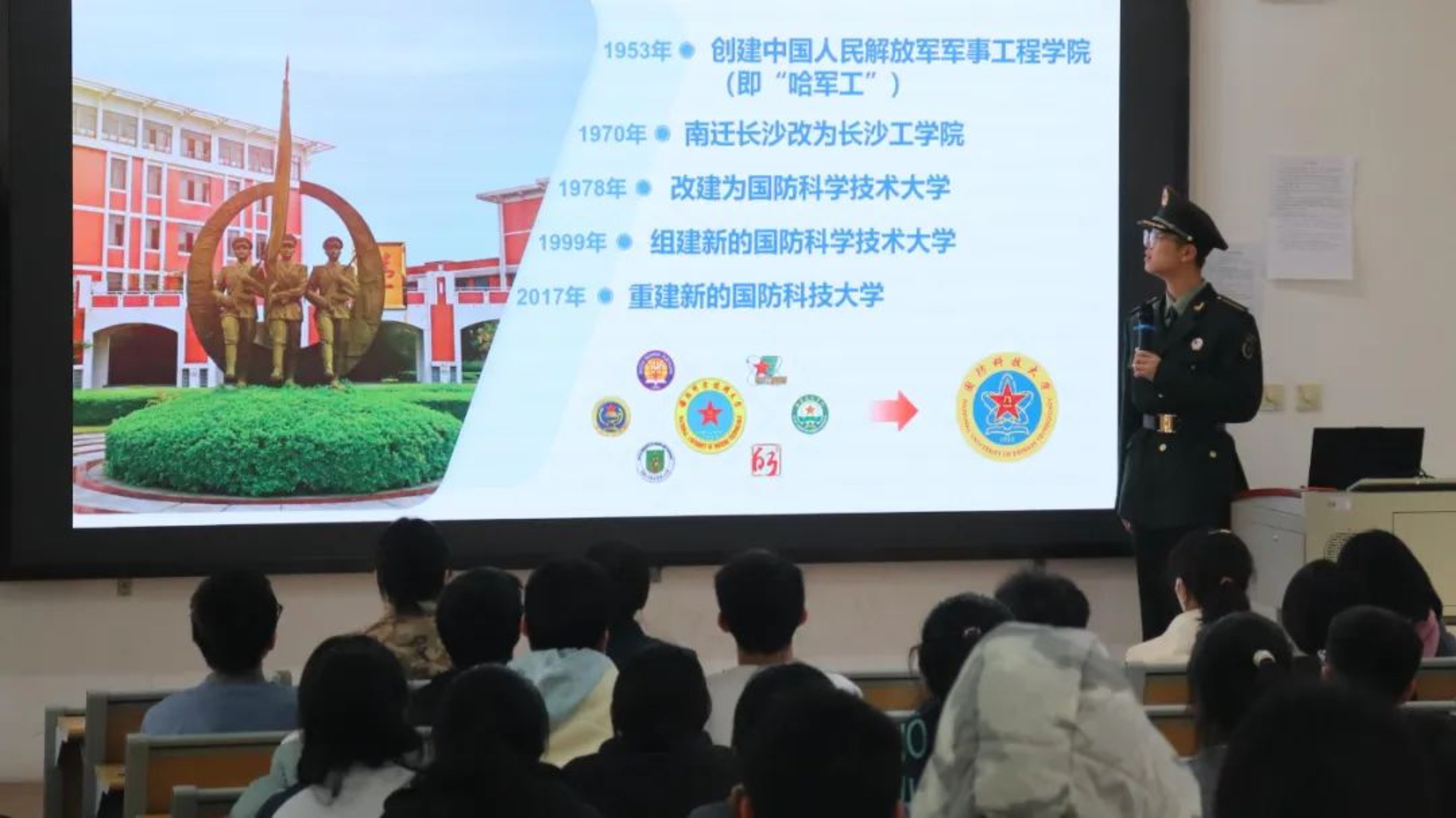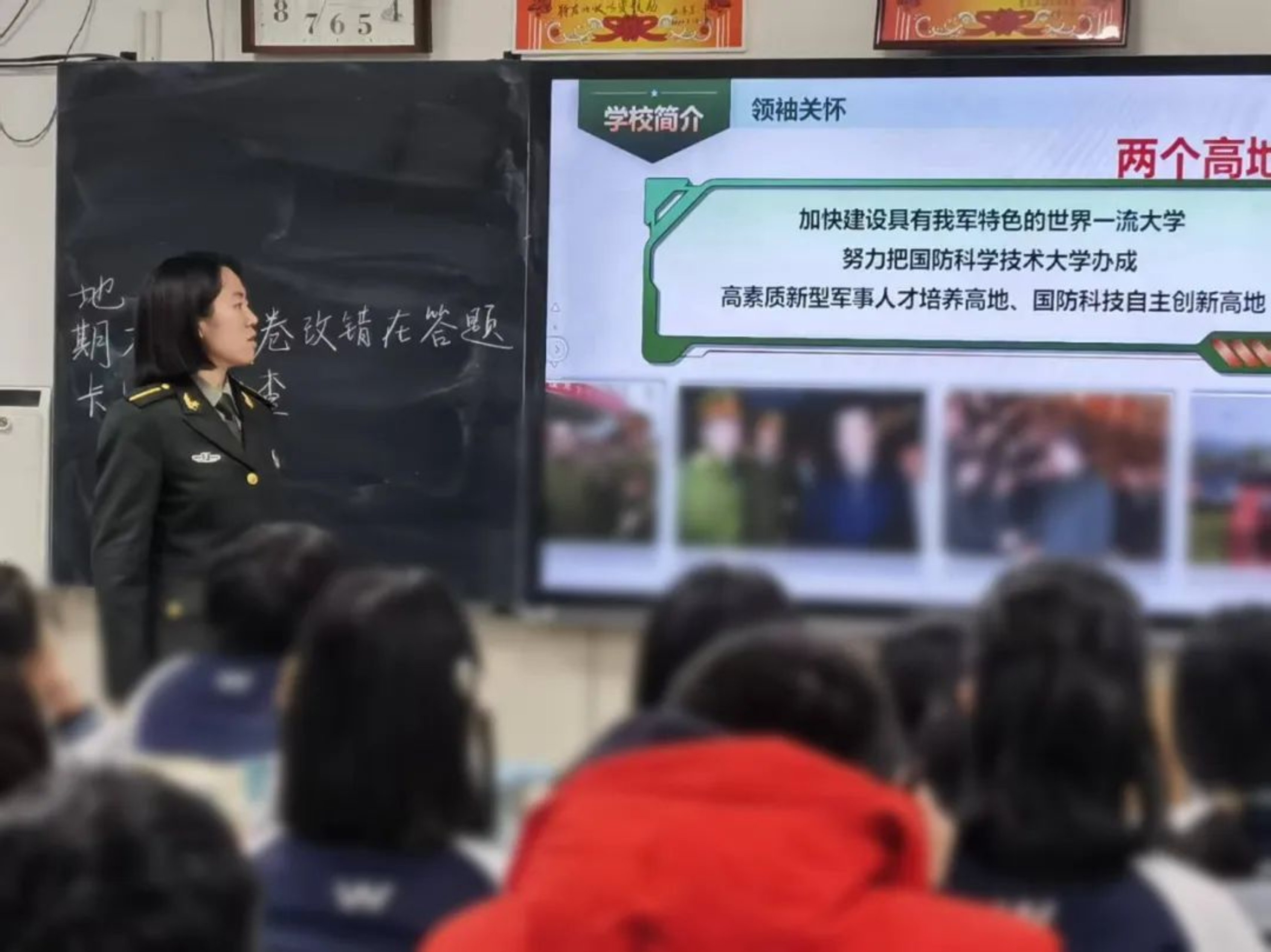 以军校学员的身份再次回到母校,不仅感慨于学弟学妹的朝气蓬勃,更欣慰于他们对军校生活的向往与渴望。而此次宣讲活动,为他们了解科大、报考科大提供了帮助。希望宣讲能够吸引更多的一中学子投身国防事业,共同为建设一流军队贡献力量!