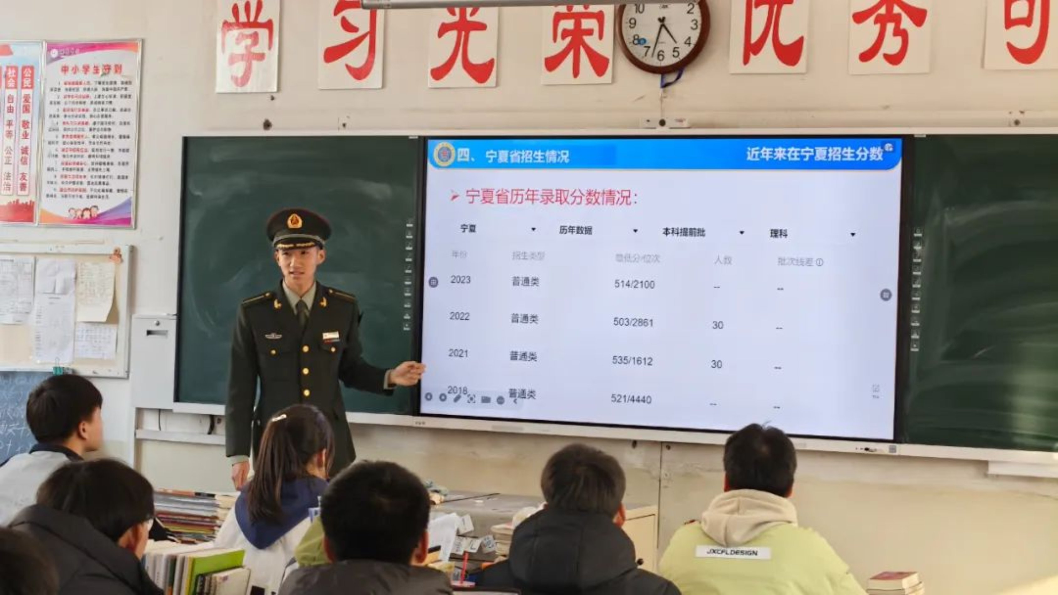 近期,由6名本科学员组成的宣讲团,满怀激情地回到母校宁夏吴忠市吴忠中学,举办了一场别开生面的招生宣传活动。尽管室外寒意袭人,但校园里却满是蓬勃的朝气。本次活动在高三年级的8个班开展,教室内挤满了求知若渴的高中学子,现场热闹非凡。