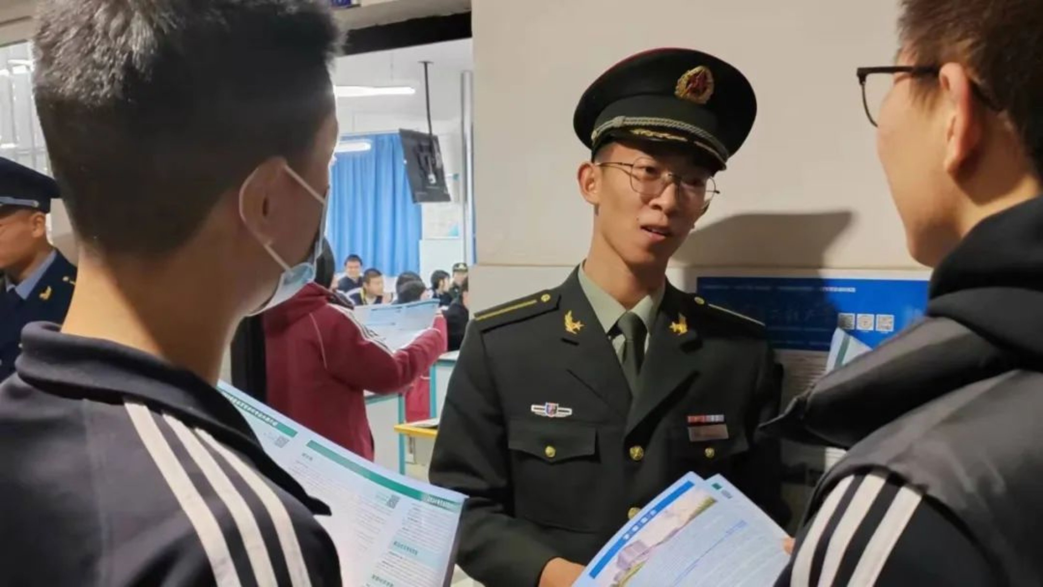 时隔半年重返母校,看到学弟学妹们怀着对军校的向往来到宣讲点位,我仿佛看到了去年的自己。只是现在,我的身份从咨询者变成了解答人,身上的校服换成了军装,从一名地方青年转变为革命军人。作为宣讲团成员,我意识到肩上担负的崇高使命,更坚定了为强国强军事业贡献力量的决心!