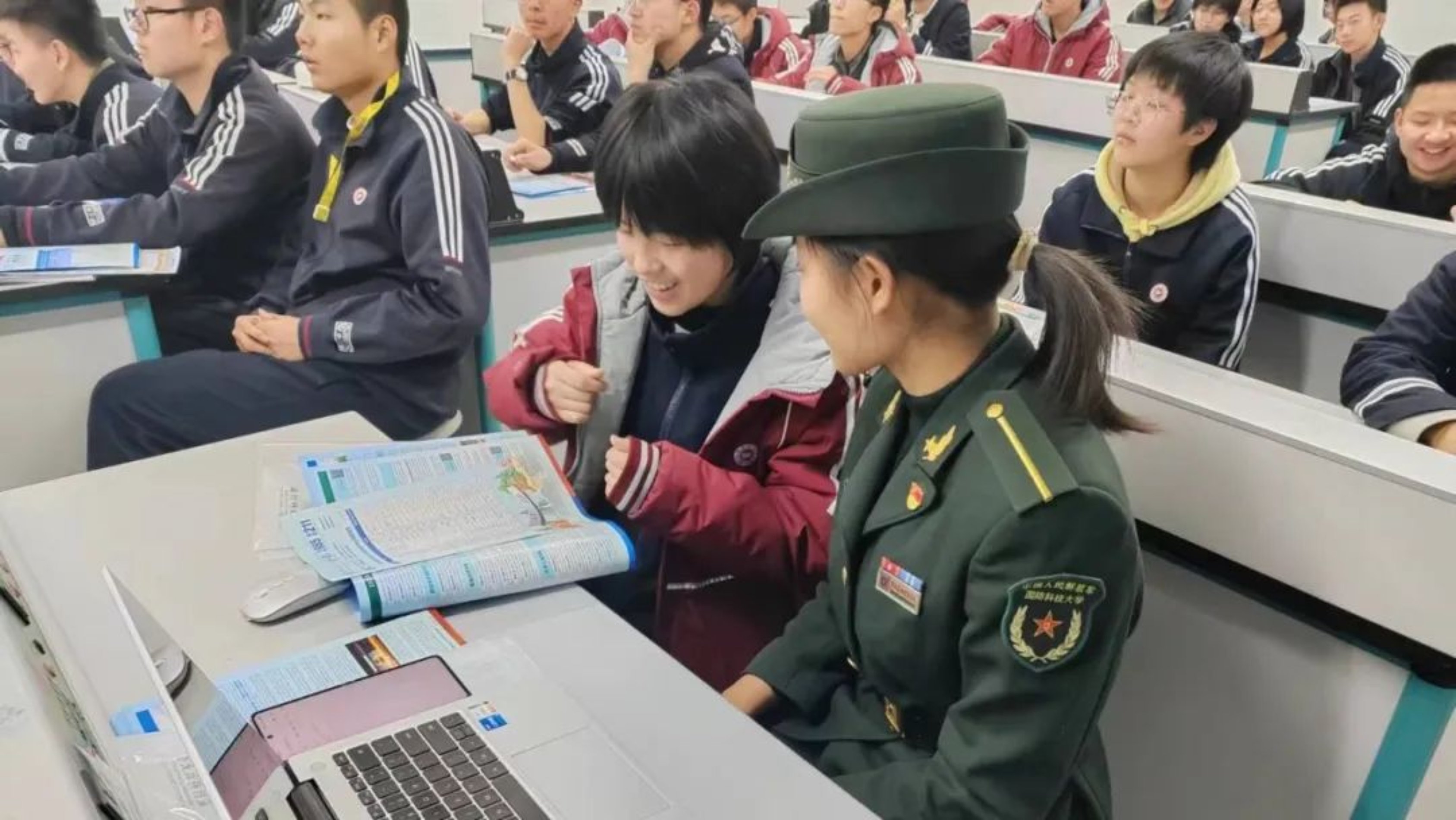 每一个关于国防科大的故事,每一张展示校园生活的照片,都能引发台下的阵阵惊叹。我看到他们眼中的光,那是对知识的渴望,对国防事业的向往。在答疑环节,面对他们抛出的一个个问题,我感受到他们对未来的期待。我耐心解答,用自己的经历告诉他们,国防科大不仅是知识的殿堂,更是梦想的孵化地。