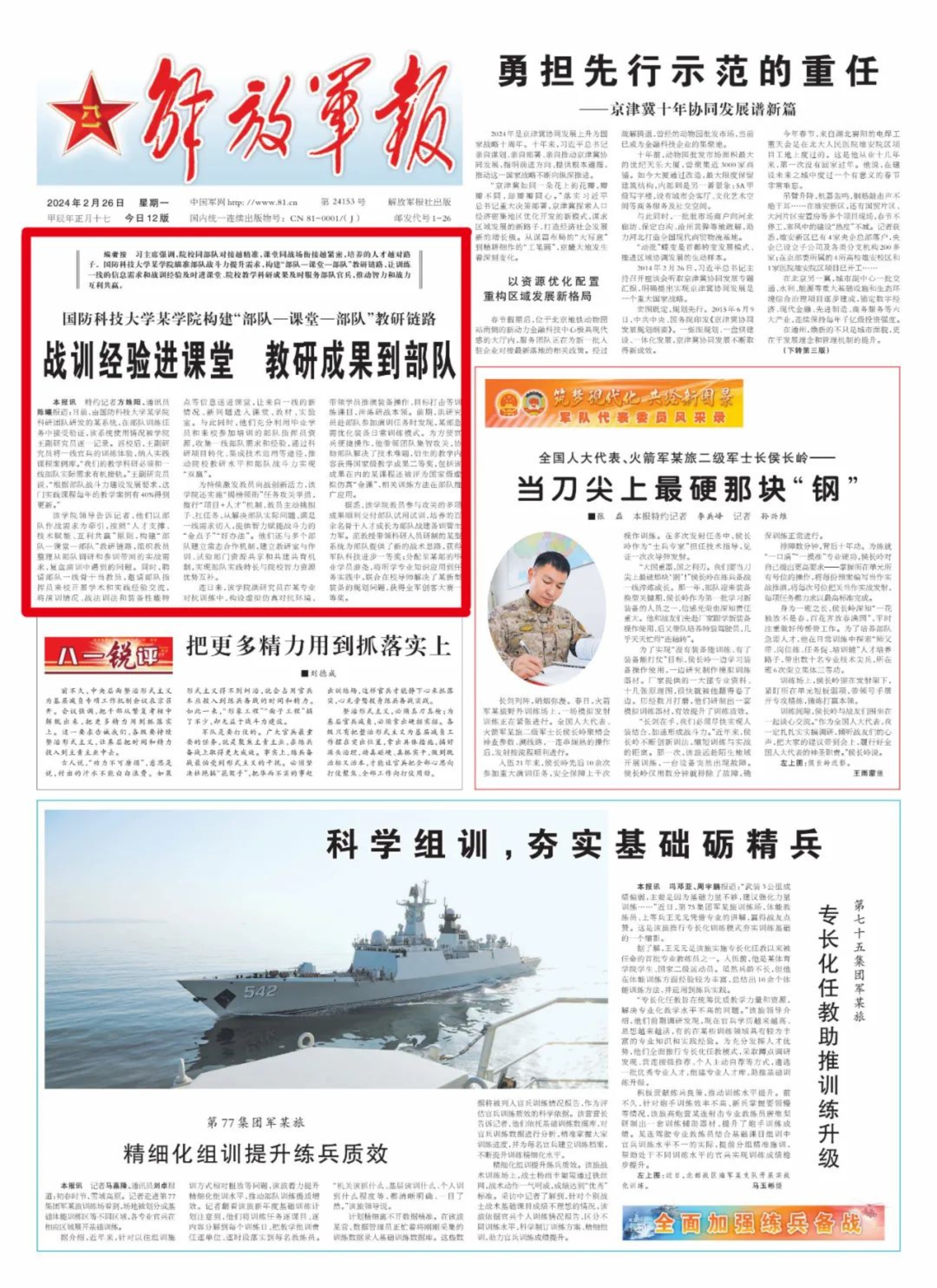 该学院领导告诉记者,他们以部队作战需求为牵引,按照“人才支撑、技术赋能、互利共赢”原则,构建“部队—课堂—部队”教研链路,组织教员整理从部队调研和参训带回的实战需求,复盘演训中遇到的问题。同时,聘请部队一线骨干当教员,邀请部队指挥员来校开展学术和实践经验交流,将演训情况、战法训法和装备性能特点等信息送进课堂,让来自一线的新情况、新问题进入课堂、教材、实验室。与此同时,他们充分利用毕业学员和来校参加培训的部队指挥员资源,收集一线部队需求和经验,通过科研项目转化、集成技术运用等途径,推动院校教研水平和部队战斗力实现“双赢”。