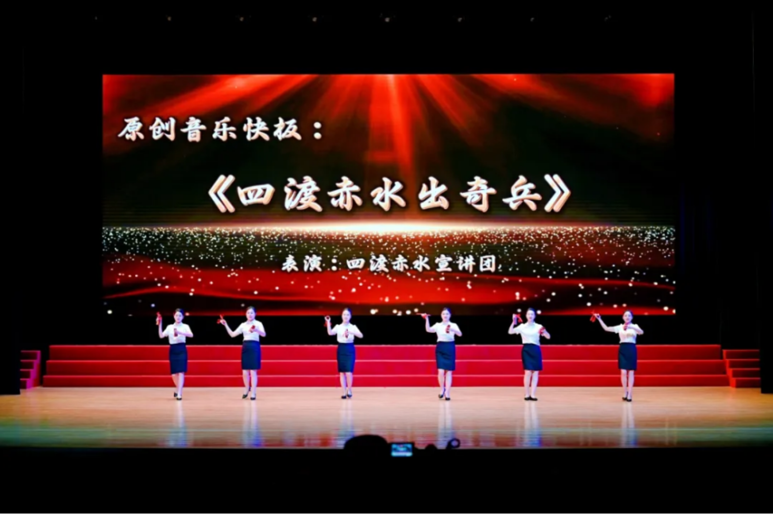 四渡赤水纪念馆宣讲团通过快板、红歌、情景剧、诗朗诵等表演形式,将革命历史化作跃动的音符和鲜活的故事,使广大学员沉浸式感受四渡赤水战役的惊心动魄与光辉历程,切身感悟红军将士不畏牺牲、百折不挠的革命精神。