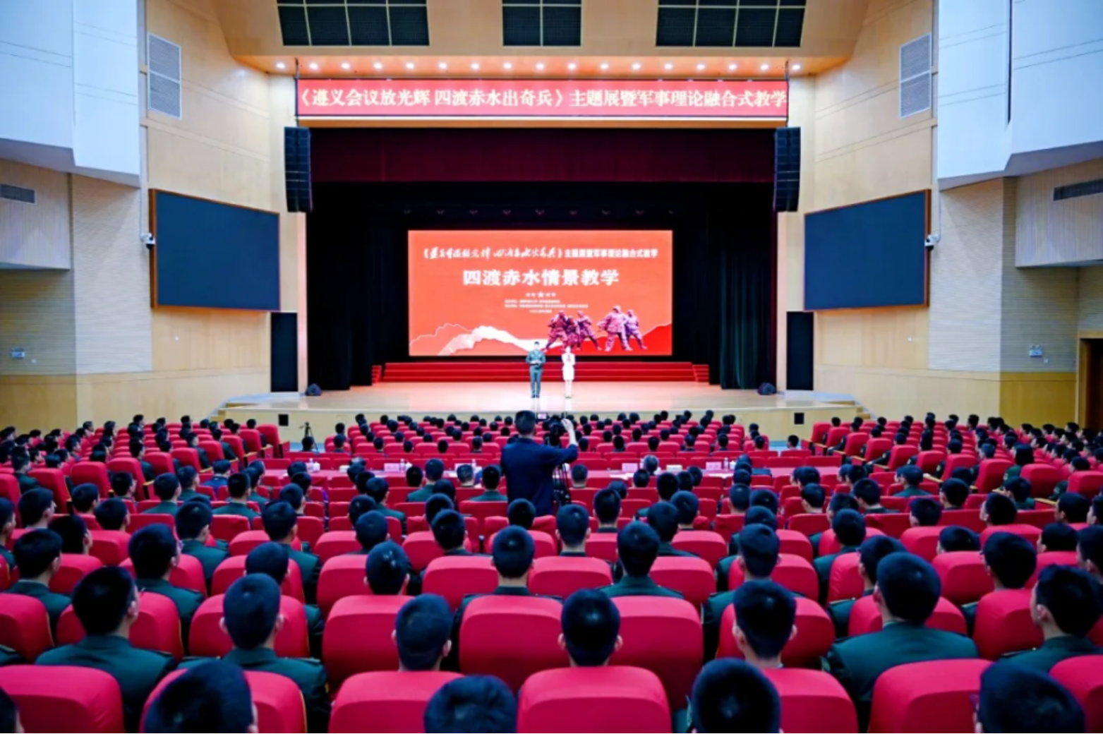 此次活动由军政基础教育学院承办,融合了专展参观、主题授课、情景教学三大板块。专题展览通过详实的史料和丰富的历史图片生动再现了中央红军在国民党重兵围追堵截下,以灵活机动的战略战术四渡赤水河、摆脱困境的惊险历程,突出展示了毛泽东军事指挥艺术的巅峰之作,深刻诠释了中国共产党在逆境中突破重围的伟大智慧与革命乐观主义精神。