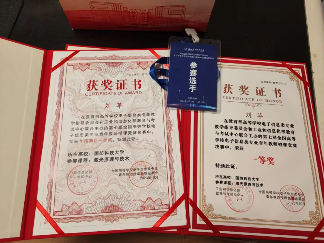 刘苹教员以华南赛区一等奖的成绩进入决赛,其参赛课程为《激光原理与技术》。从事教学工作以来,刘苹潜心教书育人,不断探索教学方法,开拓学生科研视野。比赛期间,刘苹翻阅大量中外资料,积极思考教学方式,以激光近视矫正手术为切入点,深入浅出地讲解锁模技术,把课堂打造得生动有趣,同时,她还反复打磨参赛教案和课件,最终,在激烈的角逐中脱颖而出,荣获佳绩。