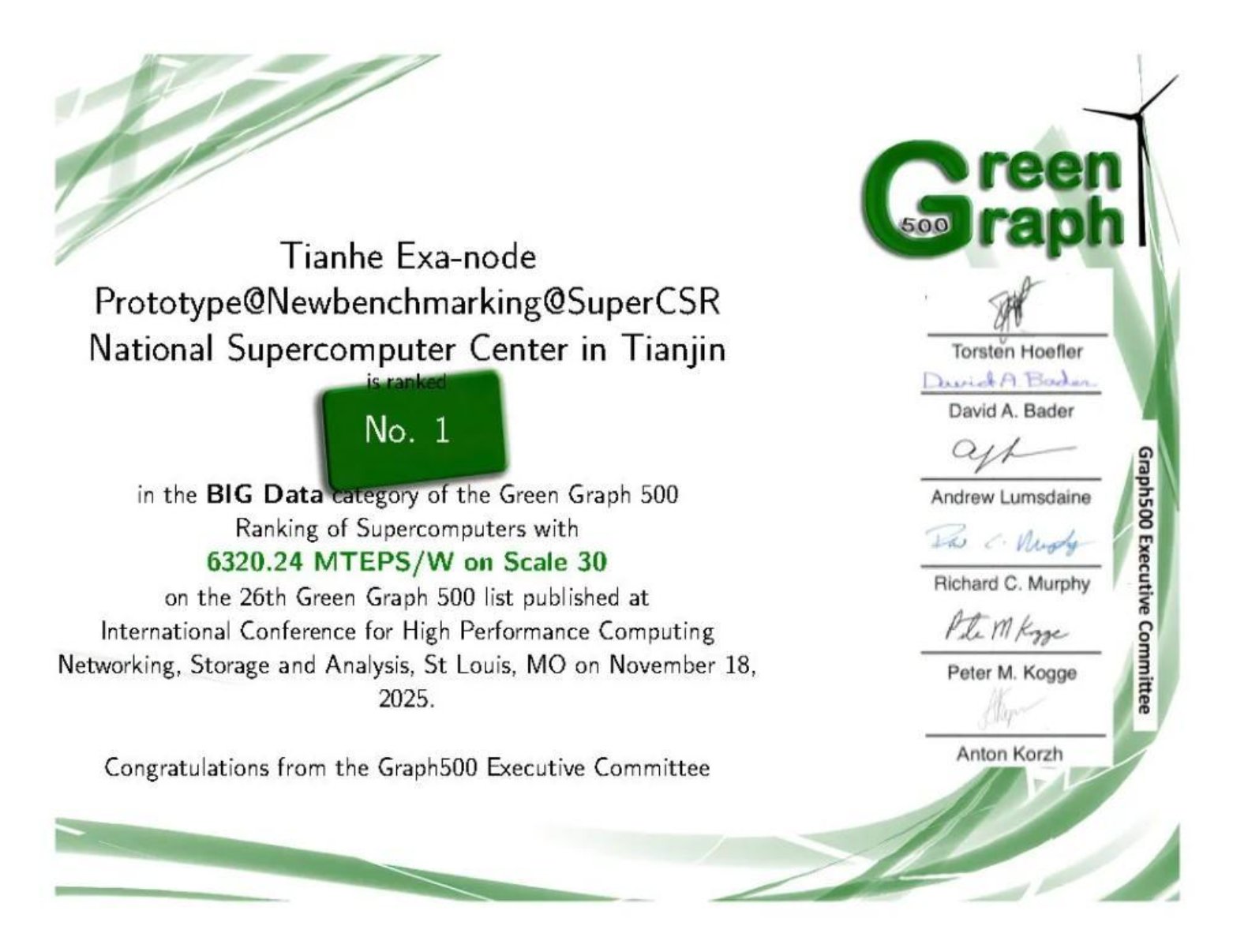 在强调实用性与高效节能的Graph500图计算评测中,“天河”超算累计10次斩获排行榜冠军。此次再夺双冠,不仅标志着“天河超算”在数据密集型应用领域持续保持国际领先水平,更对我国人工智能产业升级、大数据处理能力提升起到关键支撑与推动作用。