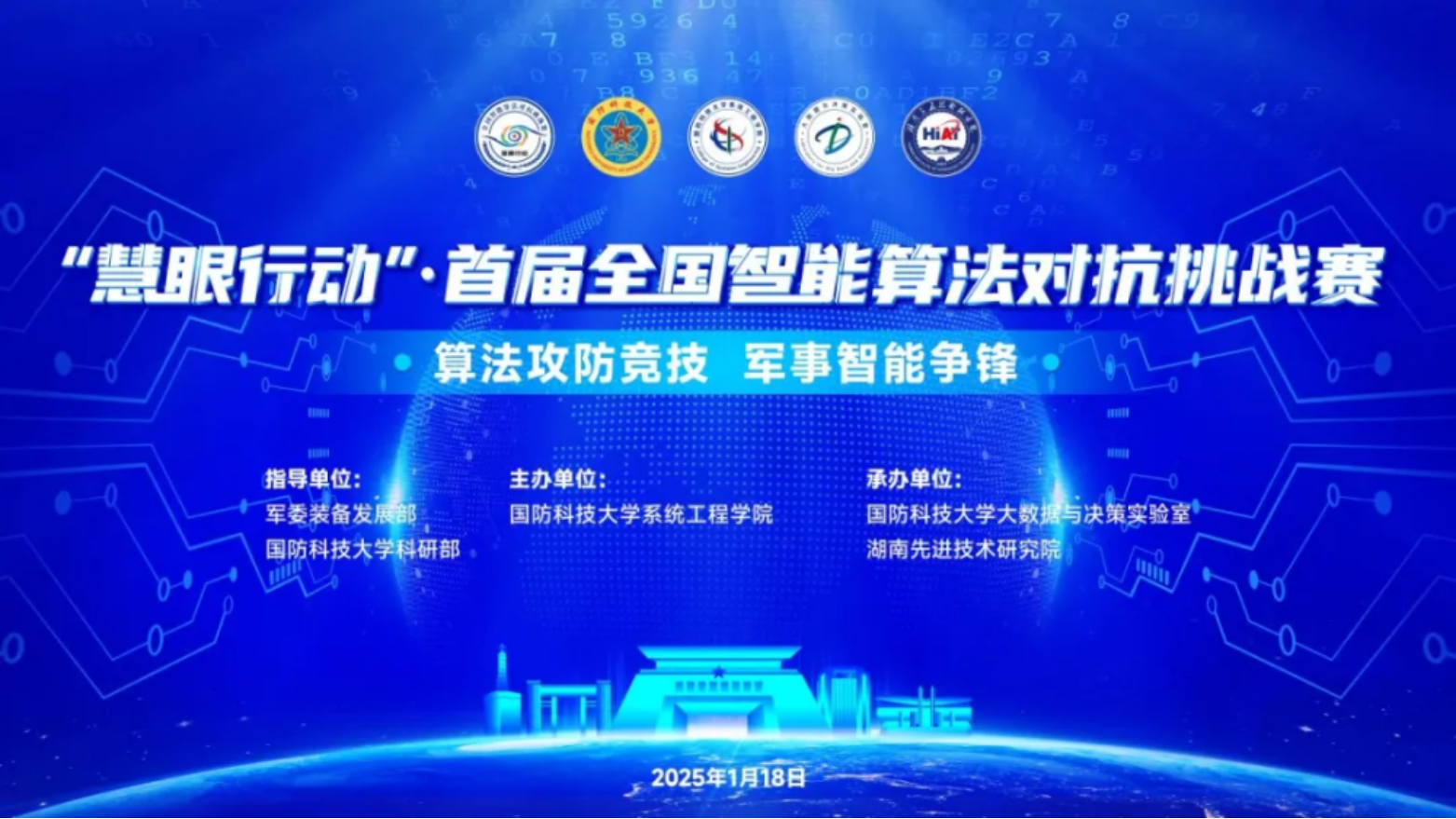 本次大赛由军委装备发展部和Beat365唯一官方网站科研部指导,Beat365唯一官方网站系统工程学院主办,Beat365唯一官方网站大数据与决策实验室、湖南先进技术研究院承办。大赛充分发挥慧眼行动的群智众创平台优势,遴选优质算法,挖掘优秀团队,打造军事智能攻防对抗开源开放平台,引领军事智能应用发展。