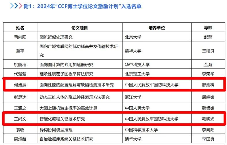 国防科大博士论文双双入选CCF榜单!