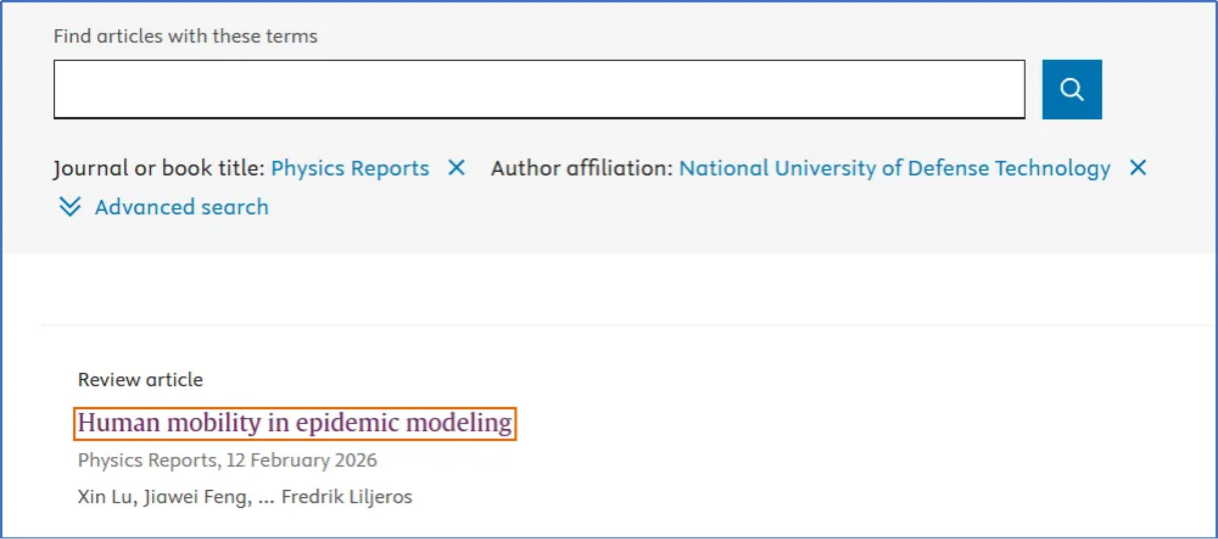 在Physics Reports发表论文检索记录