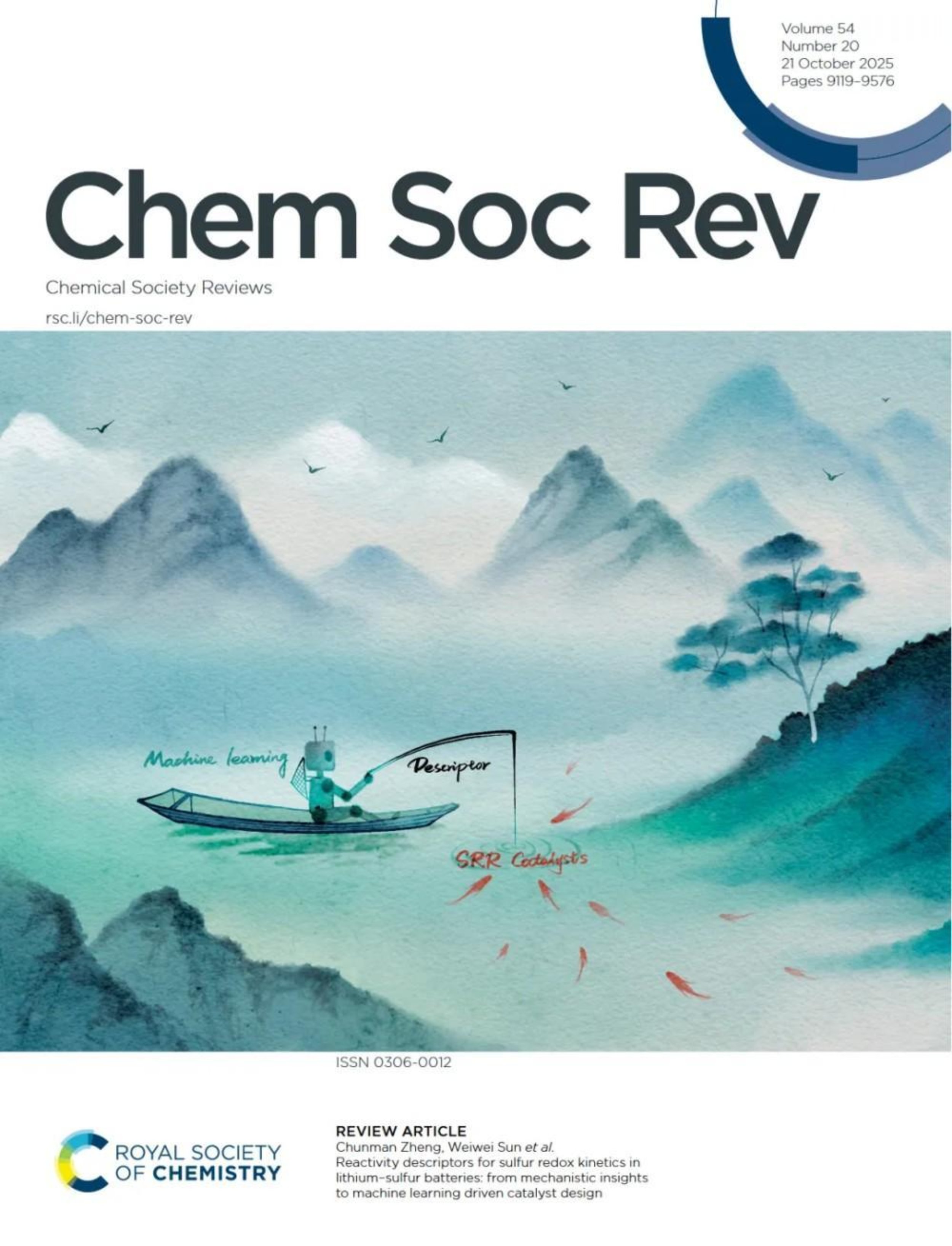 研究成果以“锂硫电池硫氧化还原动力学的反应性描述符:从机理见解到机器学习驱动的催化剂设计”(Reactivity descriptors for sulfur redox kinetics in lithium–sulfur batteries: from mechanistic insights to machine learning driven catalyst design)为题,发表于国际化学领域权威期刊《Chemical Society Reviews》(IF="39,DOI:10.1039/D5CS00324E),并被选为期刊前封面论文。