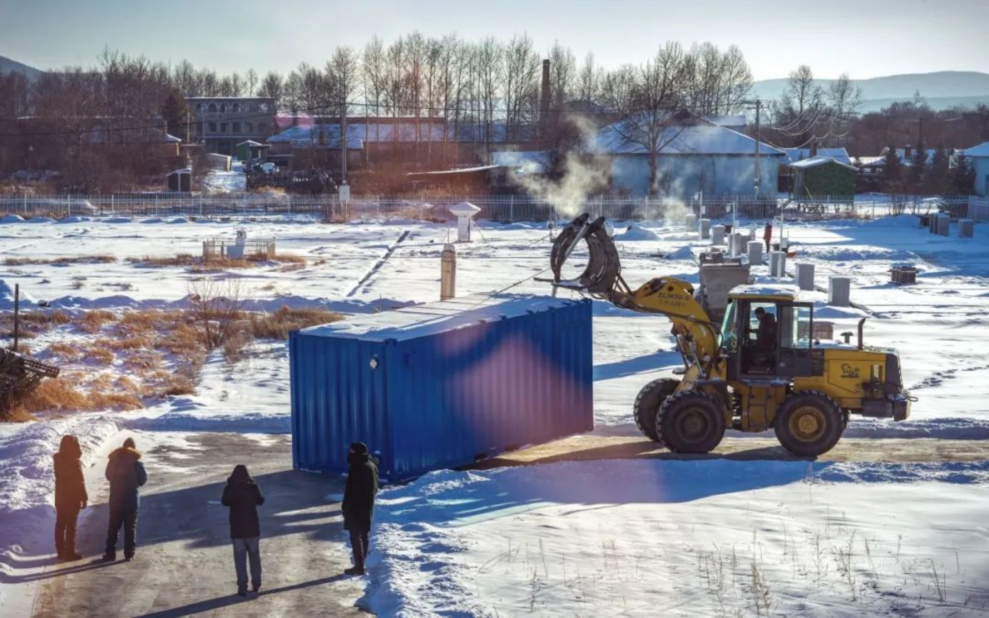 大型仪器设备安装所需的工程车辆租借困难,唯一找到的一辆叉车因为低温液压装置无法启动,化冻后多次熄火。
