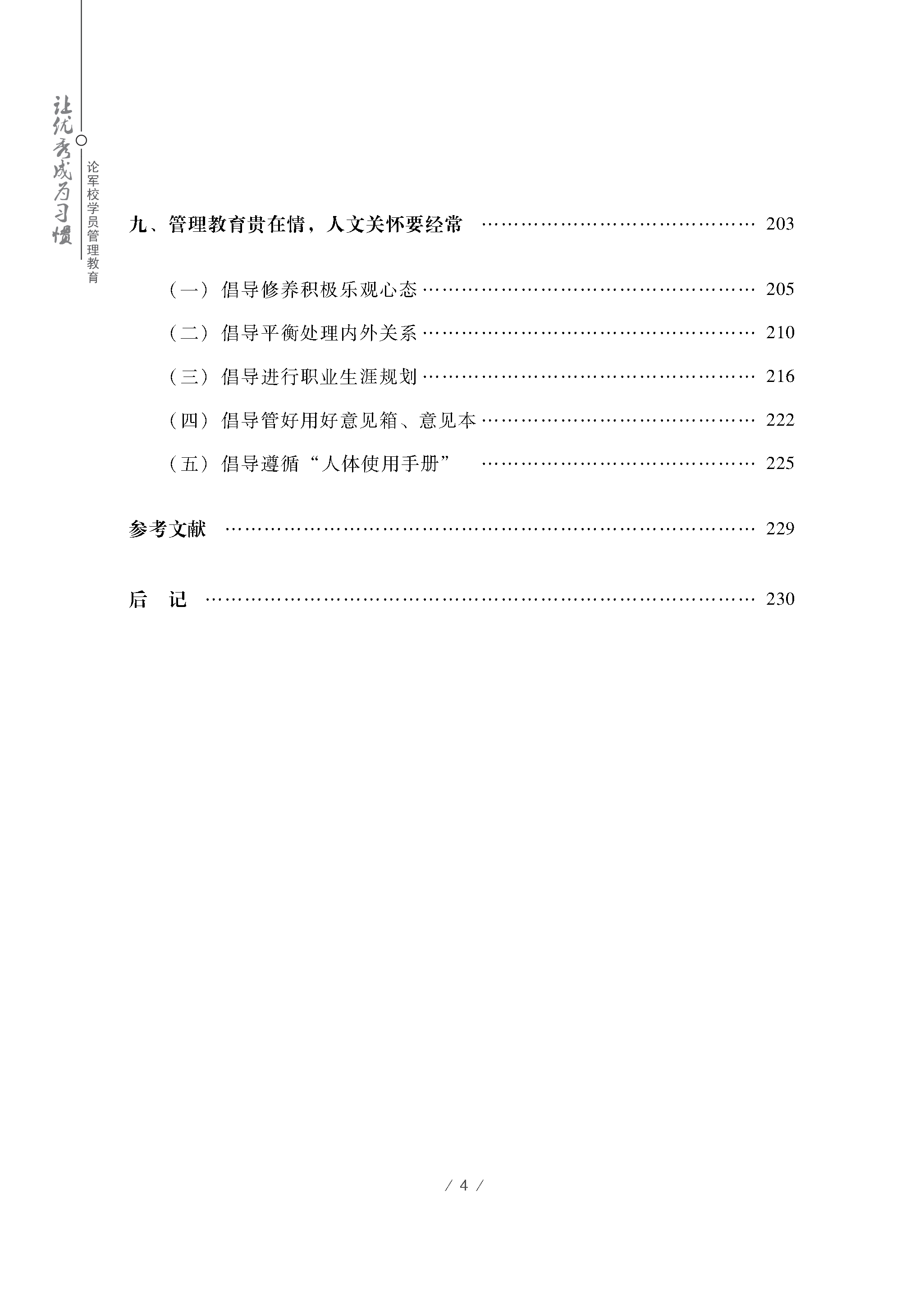 实践瑰宝:本书是作者多年管理教育任职实践的感悟沉淀,系统论述了优秀人才培养的理论原理、特点规律和方法途径,对军校学员管理教育(延伸至地方高校学生管理)工作实践和改革创新具有较强参考价值。