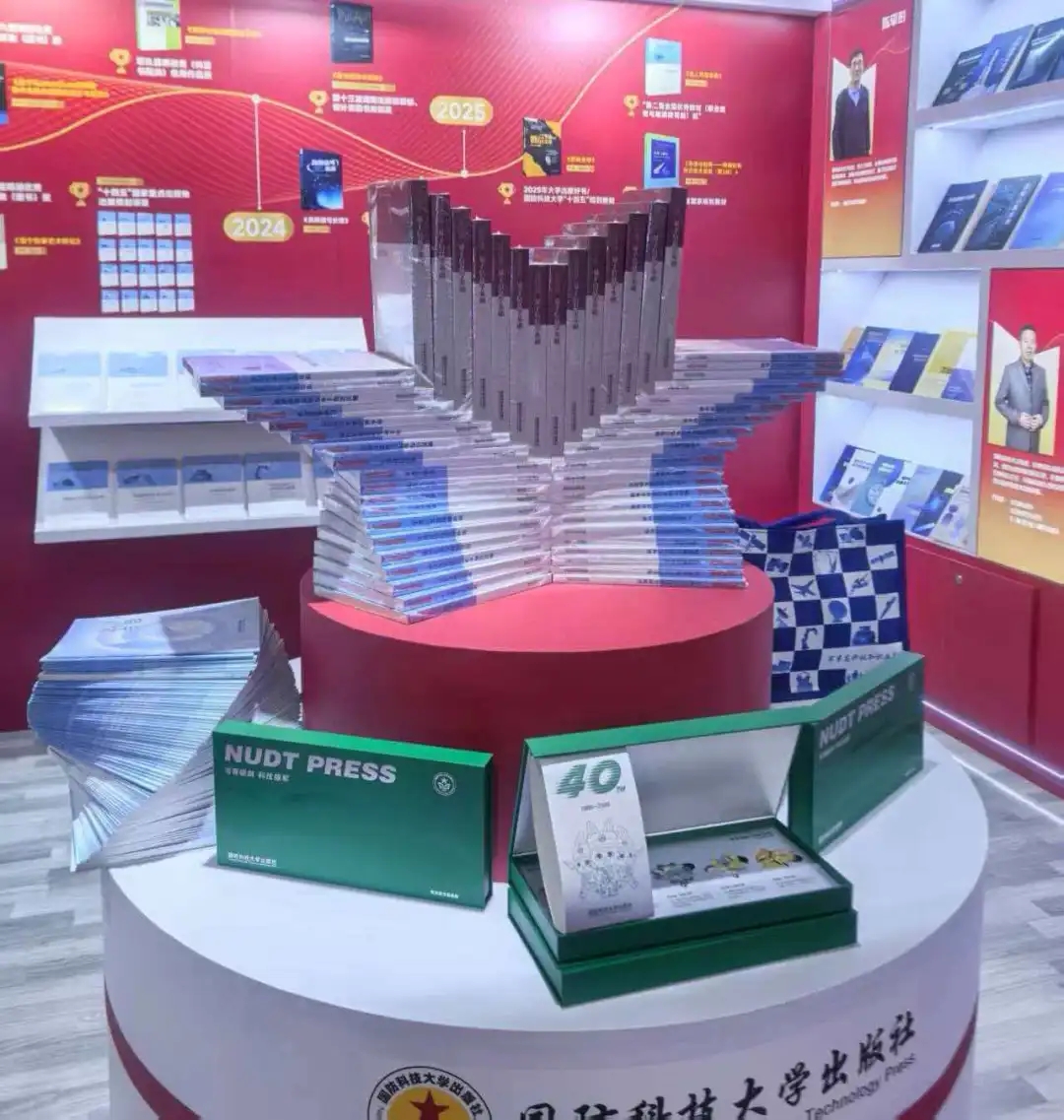 获奖图书展示区陈列了近十年获奖的优秀图书,如荣获第六届湖湘优秀出版物(图书)奖的《基于RubberDuck的离散事件系统仿真模型设计与实现》,荣获第十三届湖南出版物装帧、设计奖图书类银奖的《激光应用与功效》,荣获2025年大学出版好书的《野战生存》等。这些精品力作在订货会现场得到了同行与读者的肯定。