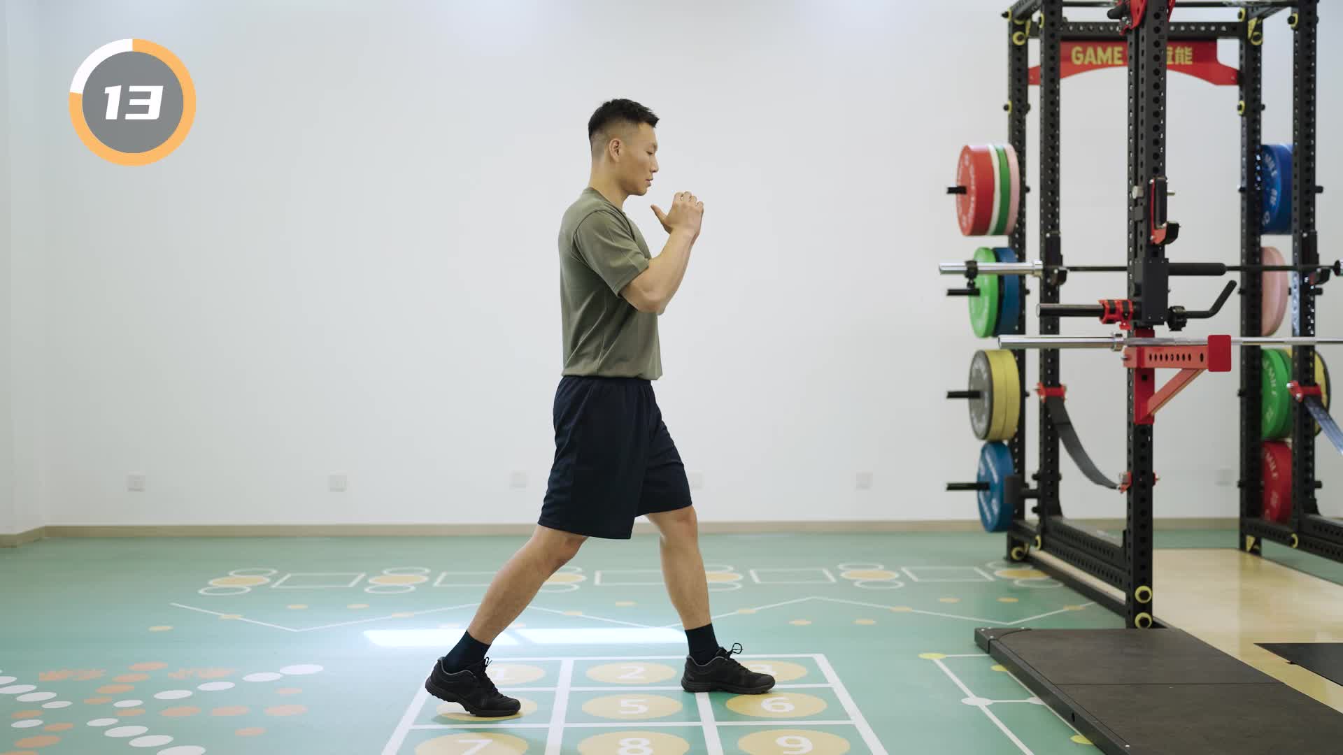 3-66 原地弓步跳
