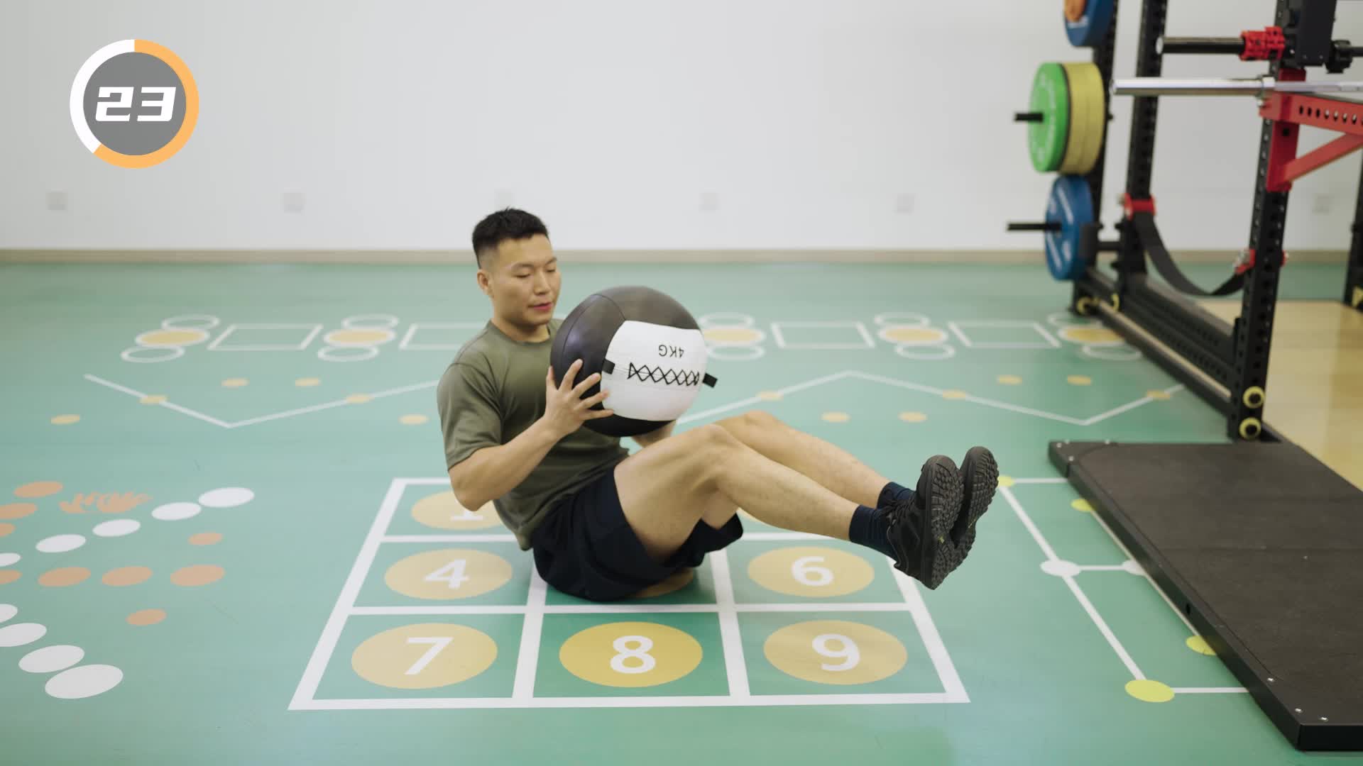 3-140 半仰卧负重转体