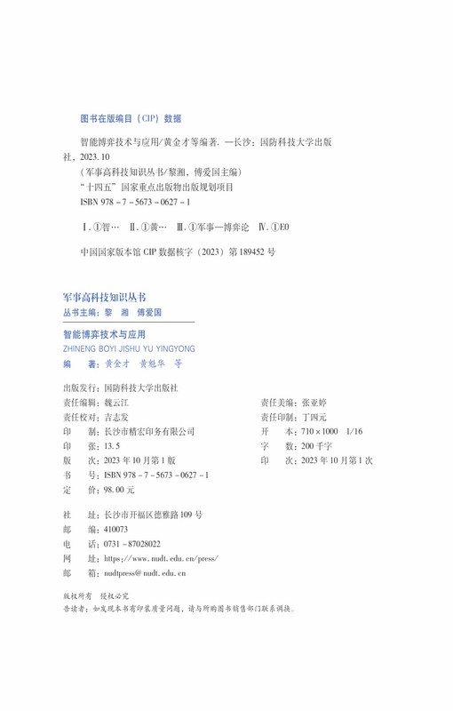 书名:智能博弈技术与应用