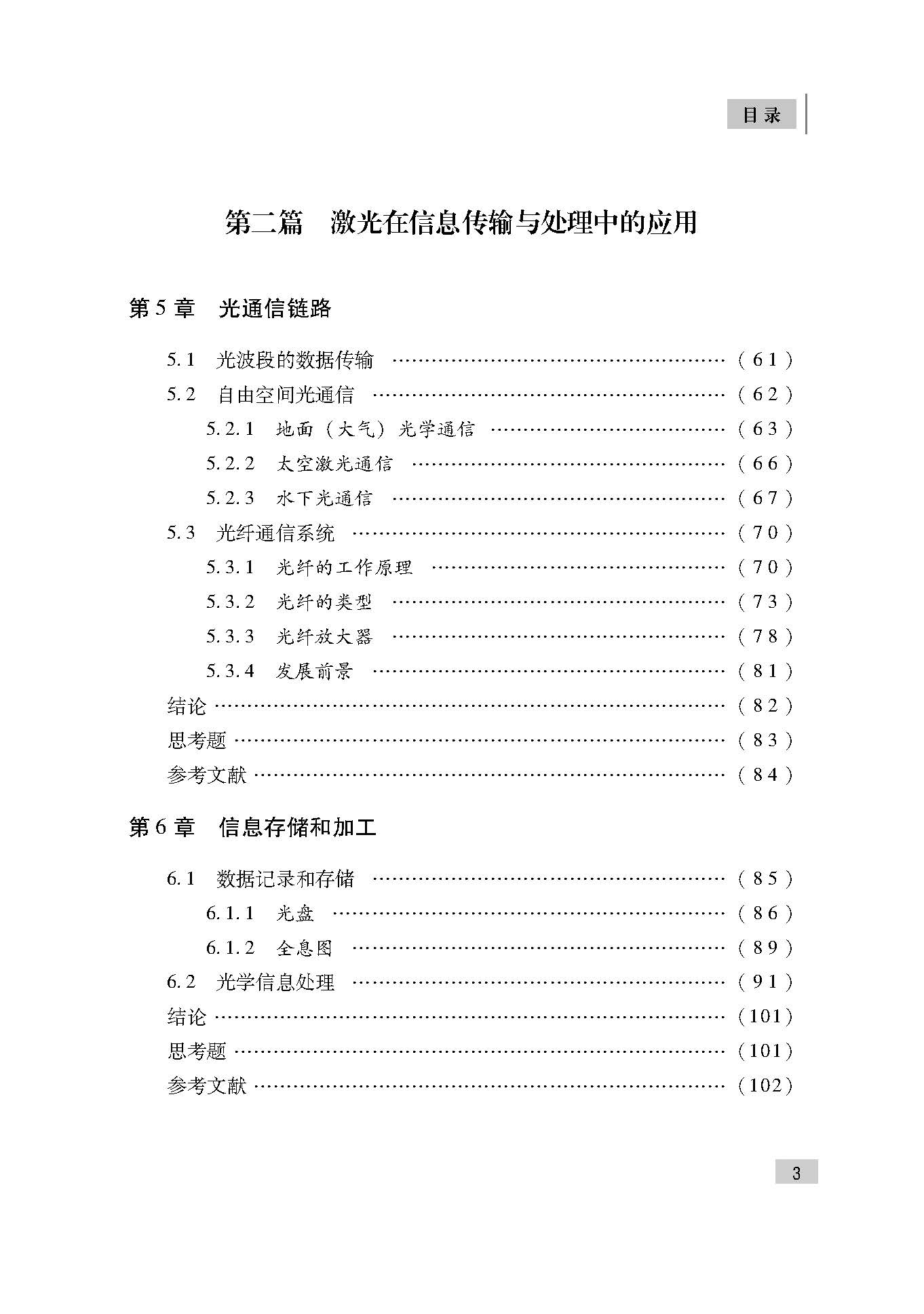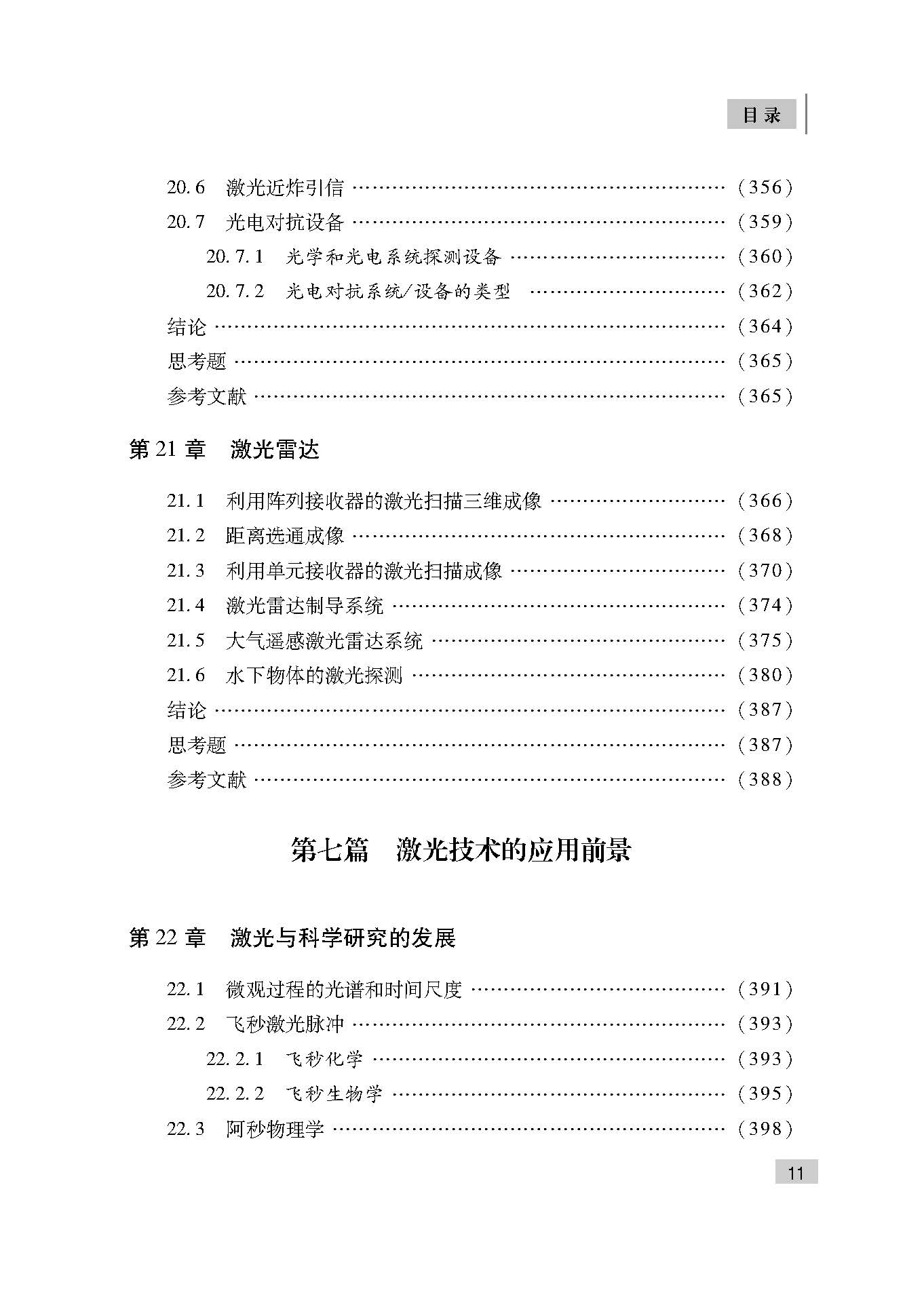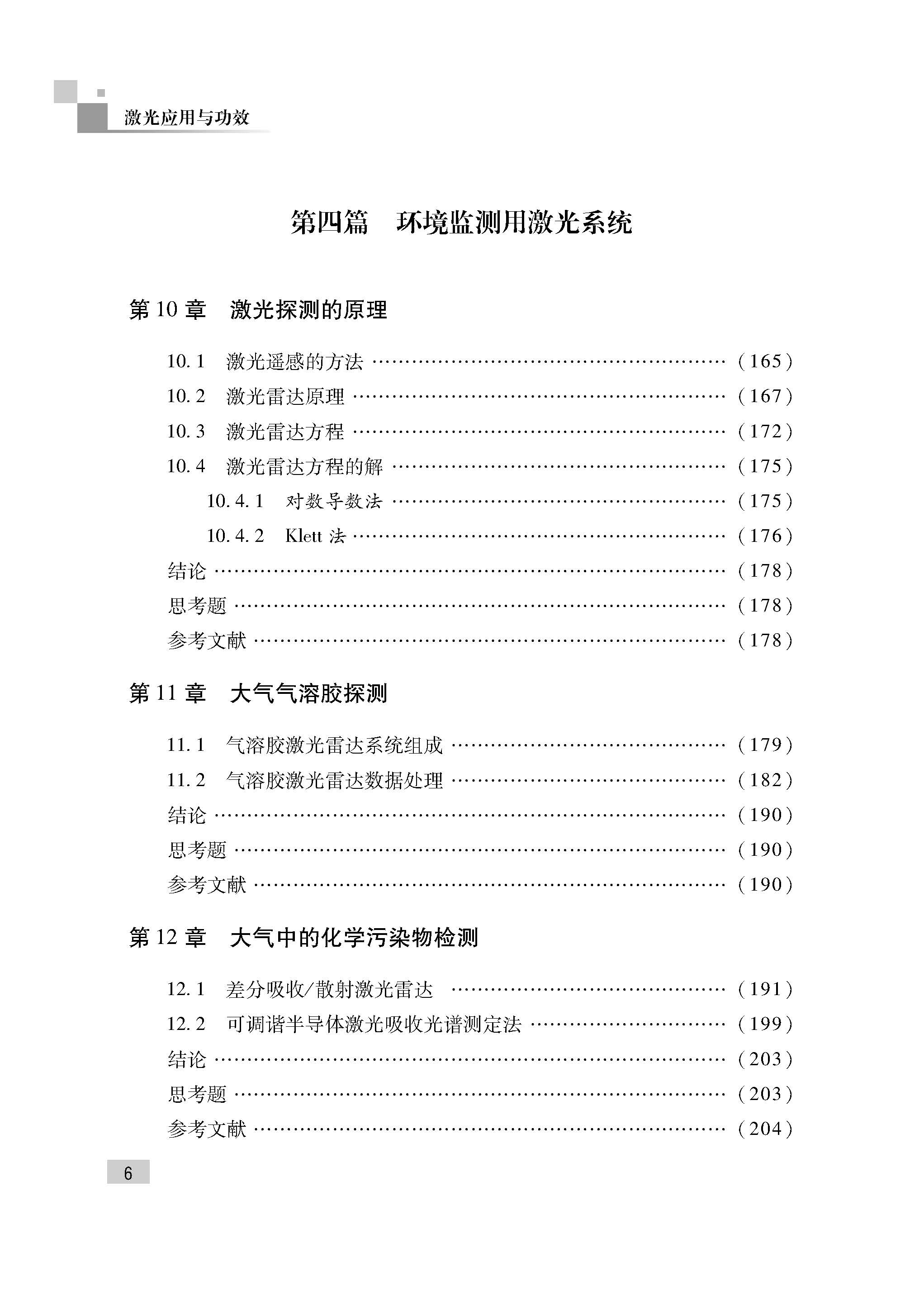 本书介绍了激光在距离测量、信息传输、工业加工、环境监测、医学和军事等方面的多种应用,包括解决实际问题的方法、使用条件、对激光性能的要求等。本书系统梳理了丰富多样的激光技术及其应用,可供激光专业本科生、研究生学习参考,也可供相关领域科研、教学和管理人员拓展知识。