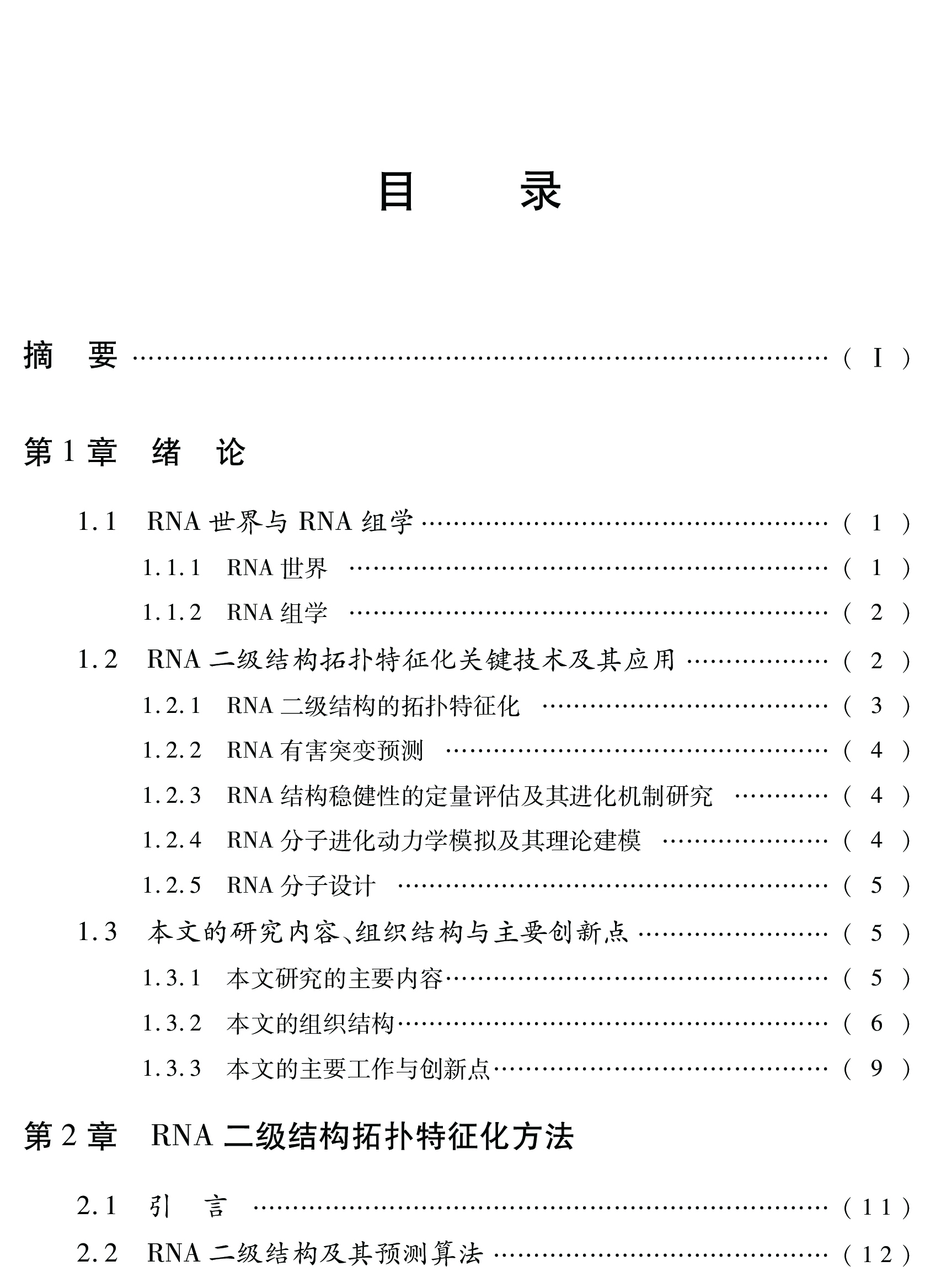 书名:RNA二级结构拓扑特征化关键技术及其应用研究