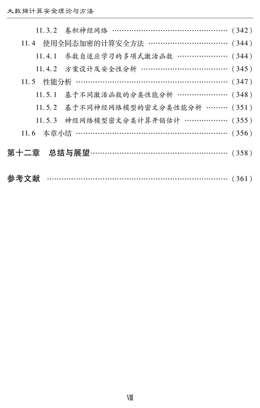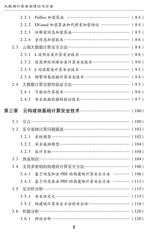 本书以大数据计算安全理论与方法为目标,深入剖析了大数据计算安全所面临的多种威胁和挑战,构建了合理的系统模型和安全模型,设计了安全高效且无须用户在线的计算安全解决方案,重点针对k近邻分类计算安全技术、深度神经网络分类计算安全技术、k均值聚类计算安全技术和频繁项集查询计算安全技术展开研究,探讨并回答了大数据计算安全的理论与实际运用中遇到的重要问题,内容丰富、论述科学,具有重要的理论价值和实际应用价值。