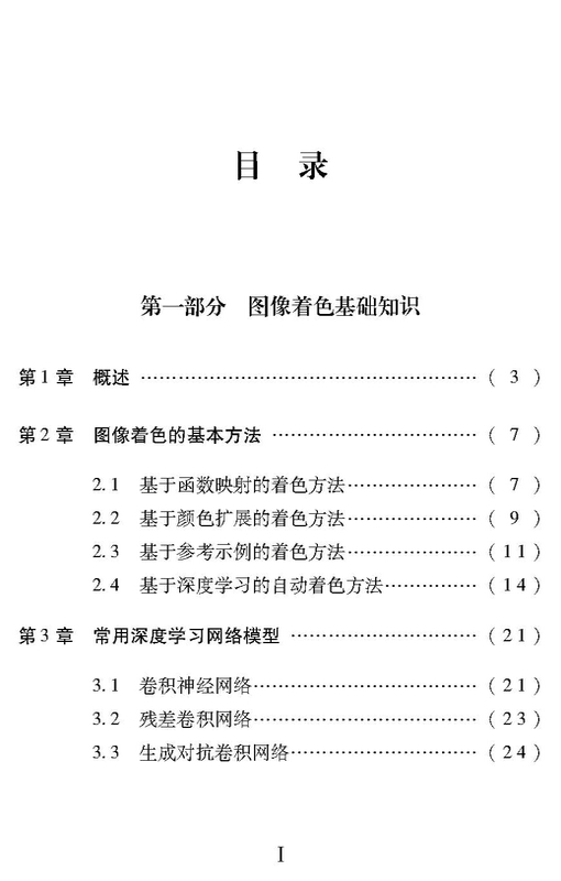 根据图像着色的基本映射关系和深度学习技术,本书提出一种基于深度学习的两阶段式端到端图像着色网络模型框架,对于给定的一维灰度图像输入映射出三维彩色图像输出。该网络模型框架分为两个阶段,即:第一阶段,使用初步着色网络对灰度图像赋予基本的颜色;第二阶段,使用颜色块对初步着色网络生成的图像进行校正,使得最终输出的结果更加接近真实图像。本书分为两个部分,共7章。第一部分,介绍图像着色基础知识,其中:第1章,概述图像着色的研究背景;第2章,总结图像着色问题的几类解决办法;第3章,梳理当前主流的深度学习网络模型;第4章,讲述使用深度学习进行图像着色时需要考虑的关键技术。第二部分,介绍本书的分阶段式图像着色系统框架,其中:第5章,概述了整个系统架构;第6章,讲述颜色块引导着色的模型及强相关惩罚函数设计;第7章,介绍使用颜色块指导校正的模型。