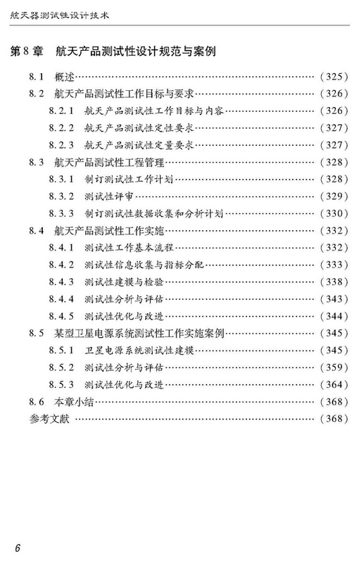 本书主要内容涉及面向测试性设计的故障模式分析、航天器测试性建模与评估、航天器测试性指标分配与测试资源优化配置、航天器测试诊断策略优化生成、航天器固有测试性设计等关键技术,并论述了航天产品测试性设计规范,可为开展航天器的测试性设计提供全面的技术支持。 本书内容与航天技术领域结合紧密,针对性强;理论分析深入完备,指导性强;涵盖测试性工程实施全过程,给出系统的解决方案,实用性强。可供从事航天器设计、测试、诊断领域的科技人员参考,也适合大学相关专业的师生阅读。