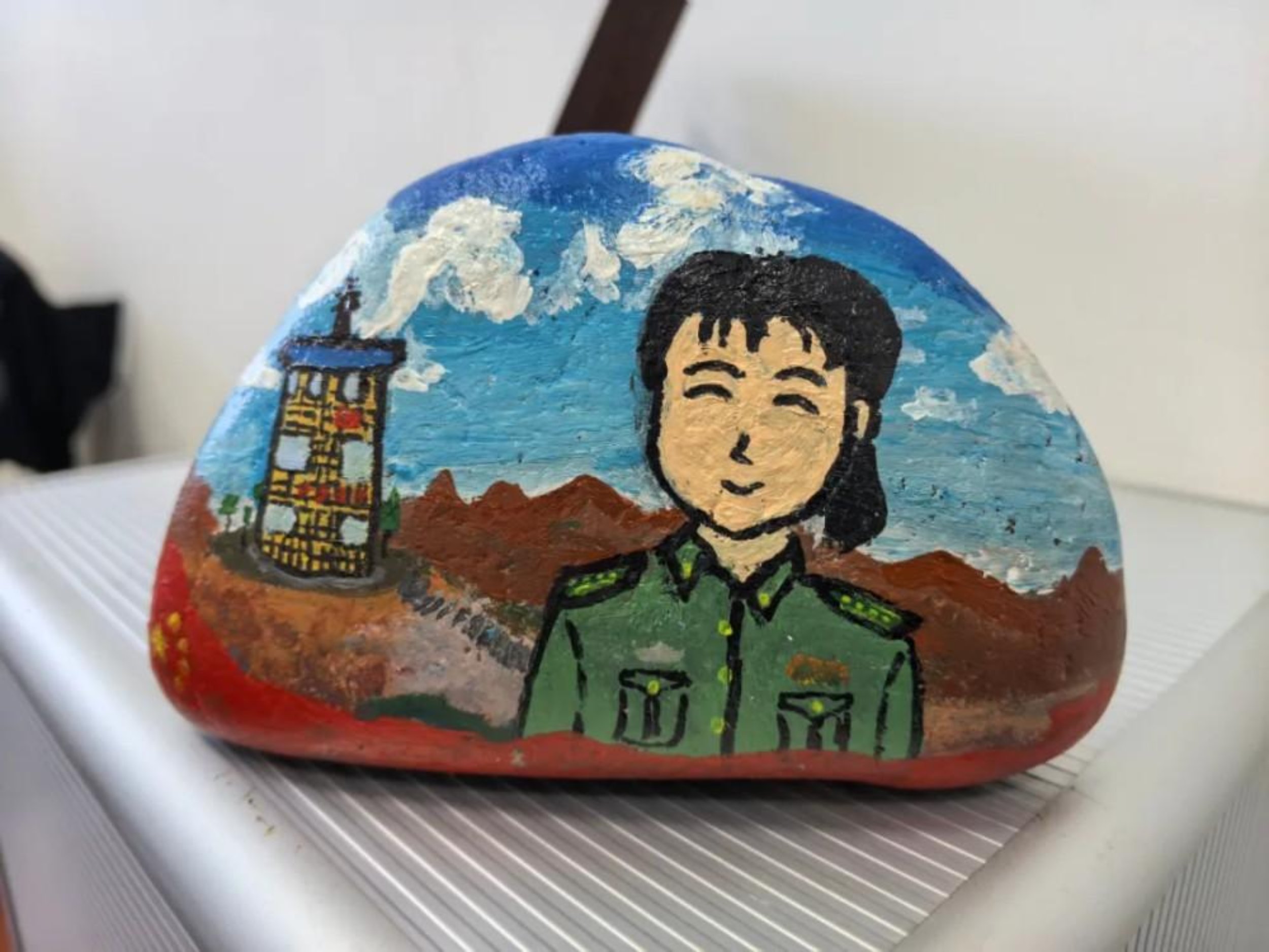 “孩子们送我石头时,我还是没忍住眼泪。”边防条件艰苦,这些20多岁的官兵,平时最大的乐趣就是在戈壁滩捡石头、画石头。为了感谢傅婉娟,他们精心挑选、连夜绘制,最终将这块画有她笑容的石头,郑重送到了她的手中。