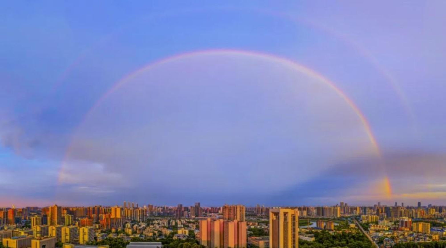 8月25日,秋季学期开始第一周的周一,金色为校园蒙上温柔滤镜。两道彩虹凌空架起,是大自然递来的请柬,是对新生的热烈欢迎,也是对新学期的隆重剪彩。