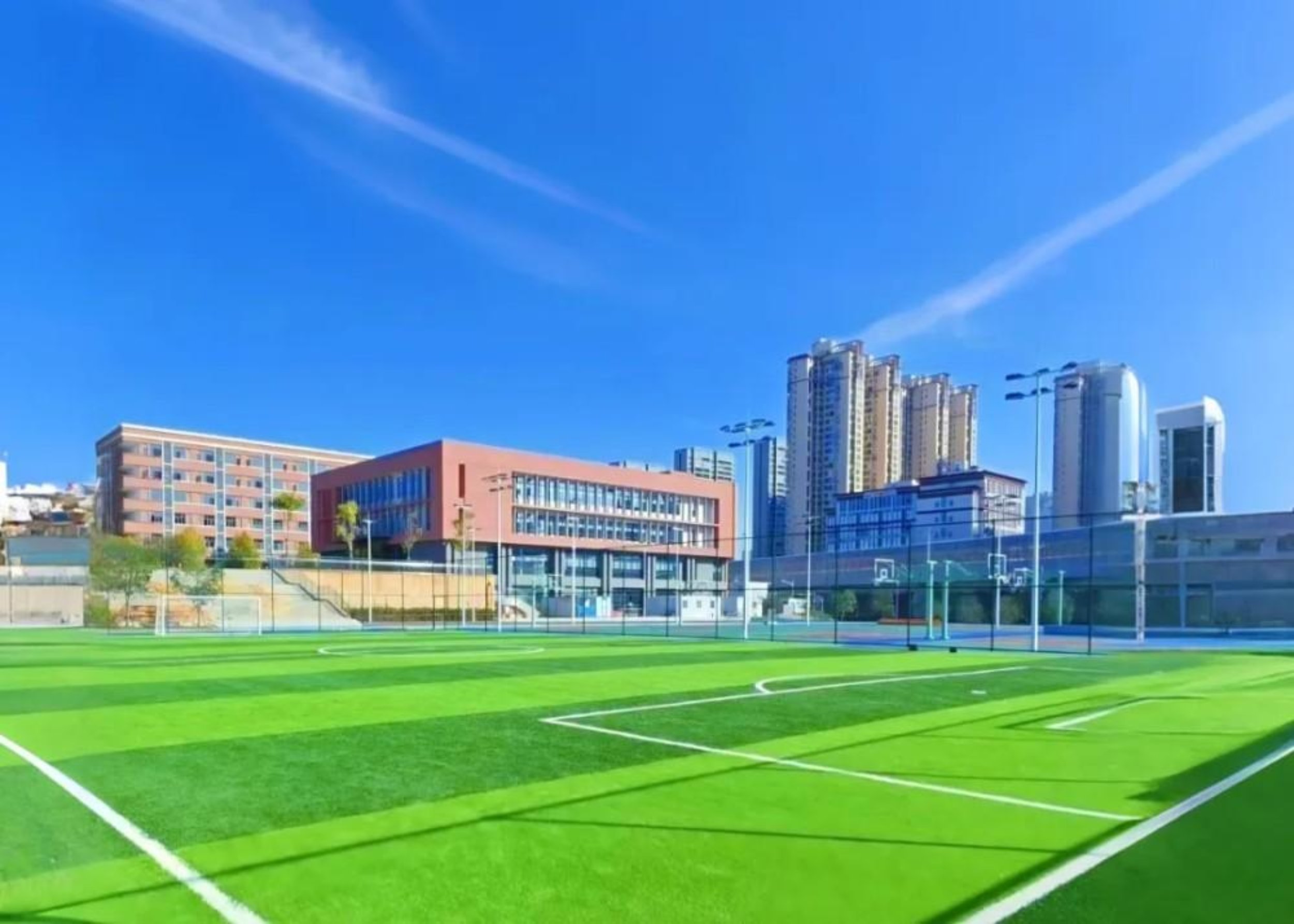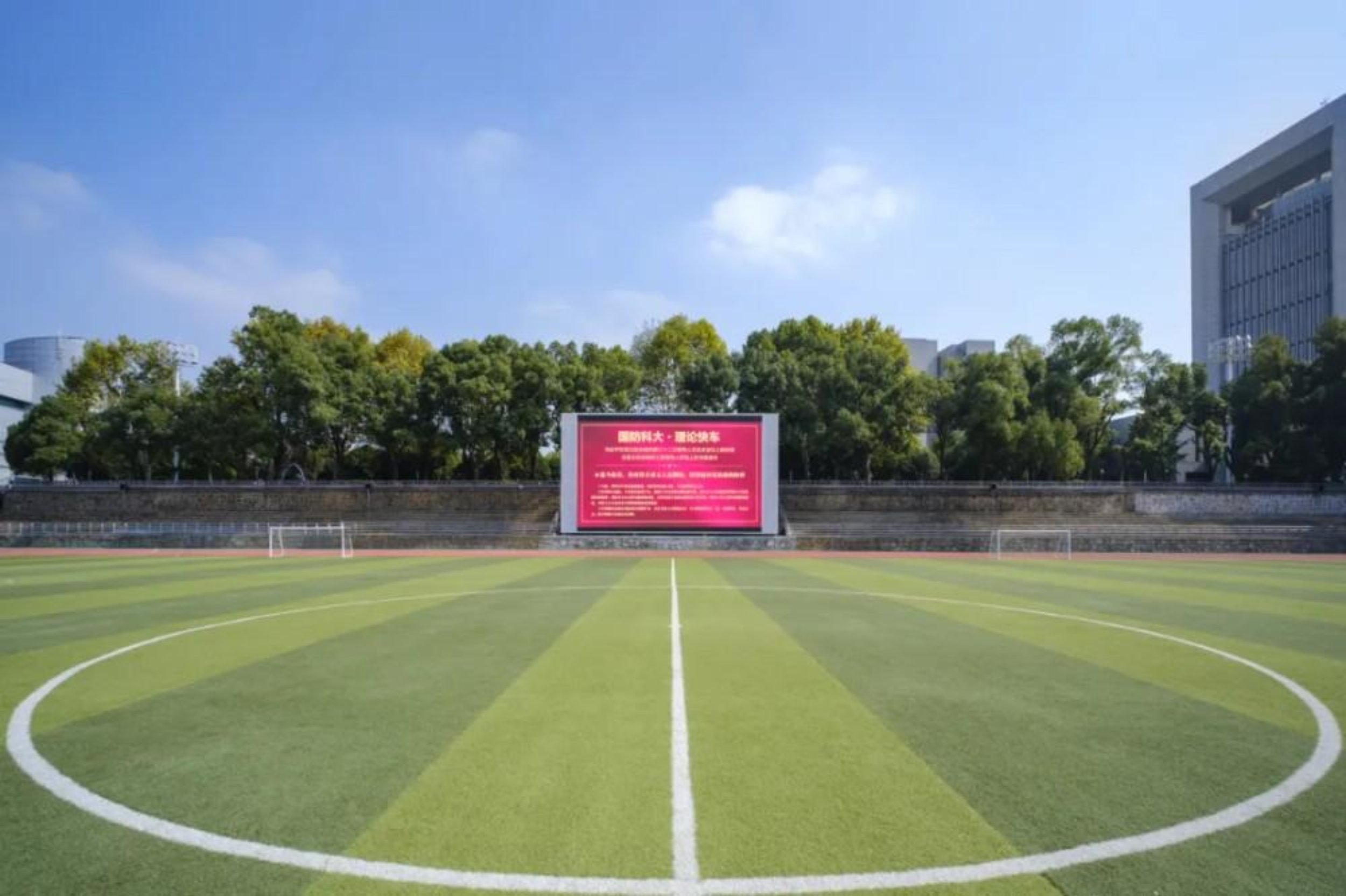 修整后的操场宛如新生,深浅相间的草皮衬着雪白标线,在阳光下显现蓬勃生机。操场一端新立的大型显示屏尤为醒目,现代感十足的造型与整洁操场相映,让这片场地既洋溢着运动活力,又添了崭新的文化气息,校园文化的多姿多彩近在眼前。