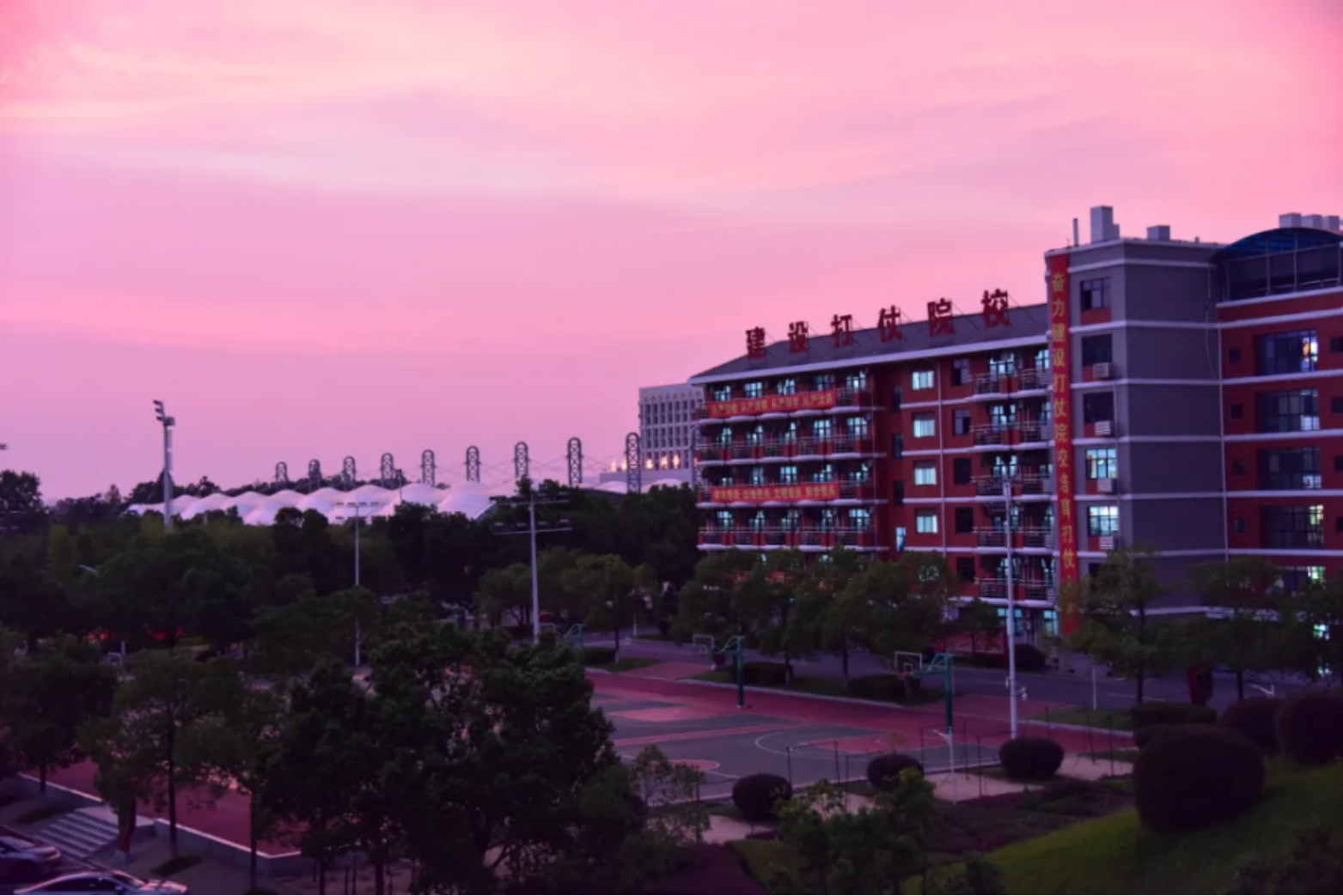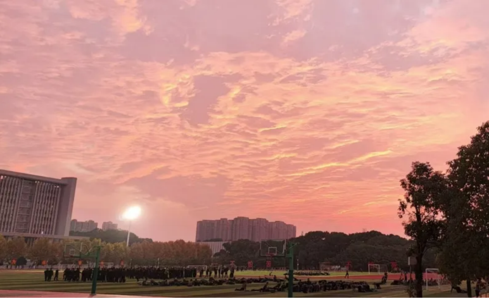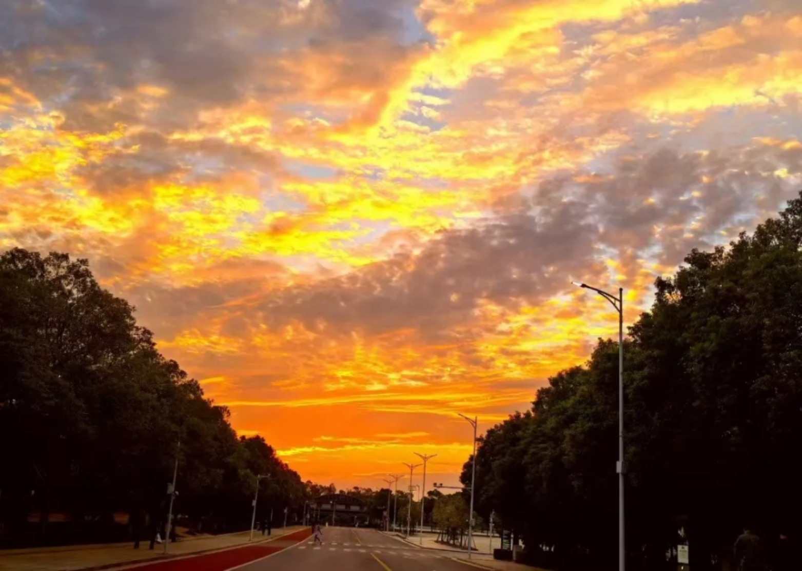 我们踏在溢满金芒的校道间于科大逐梦的热忱熊熊燃烧绚烂的晚霞在这片庄重且纯粹的学府之巅描绘辉煌篇章的并非你如绸的橙彩——而是那携梦启程的少年们