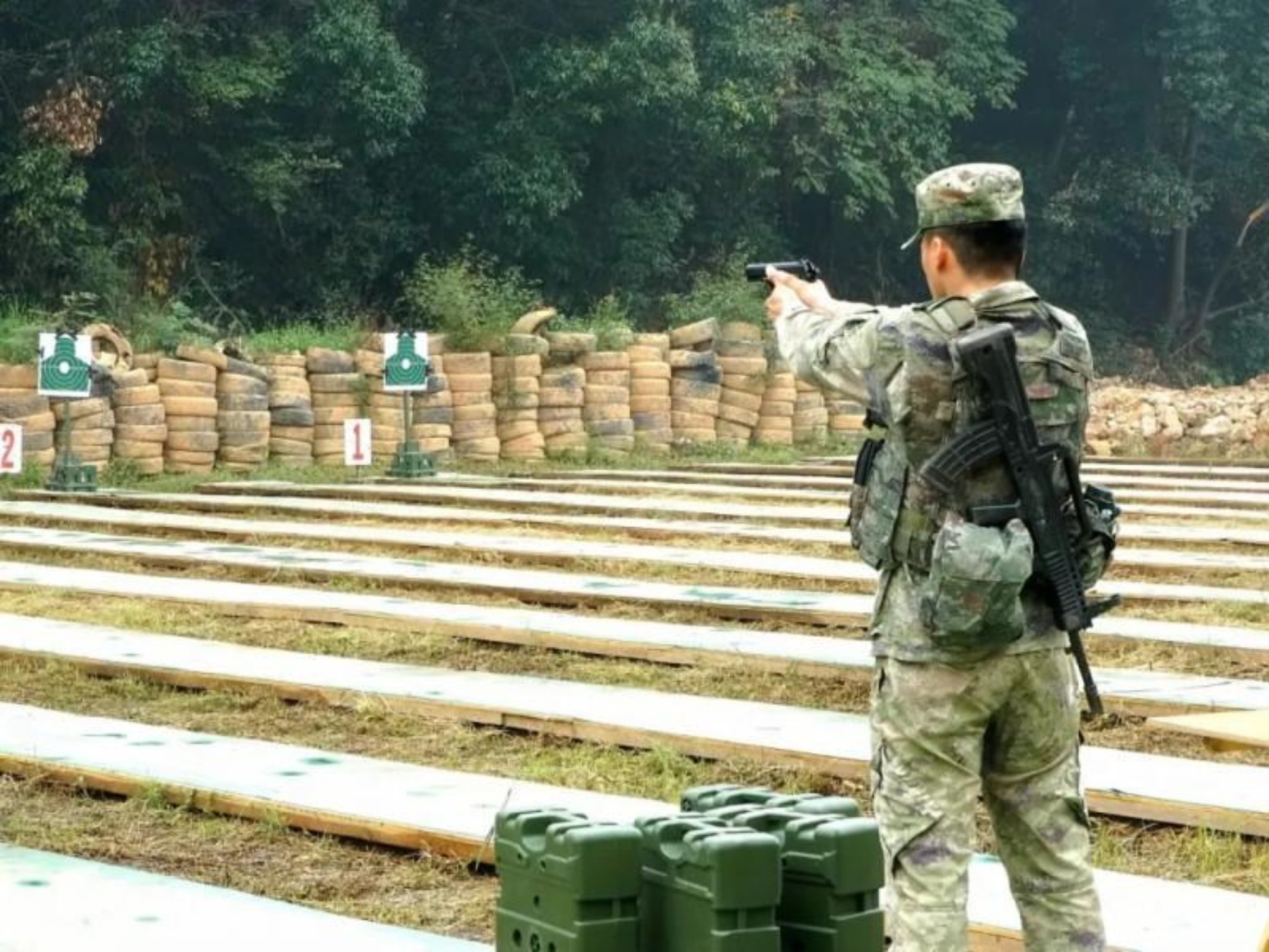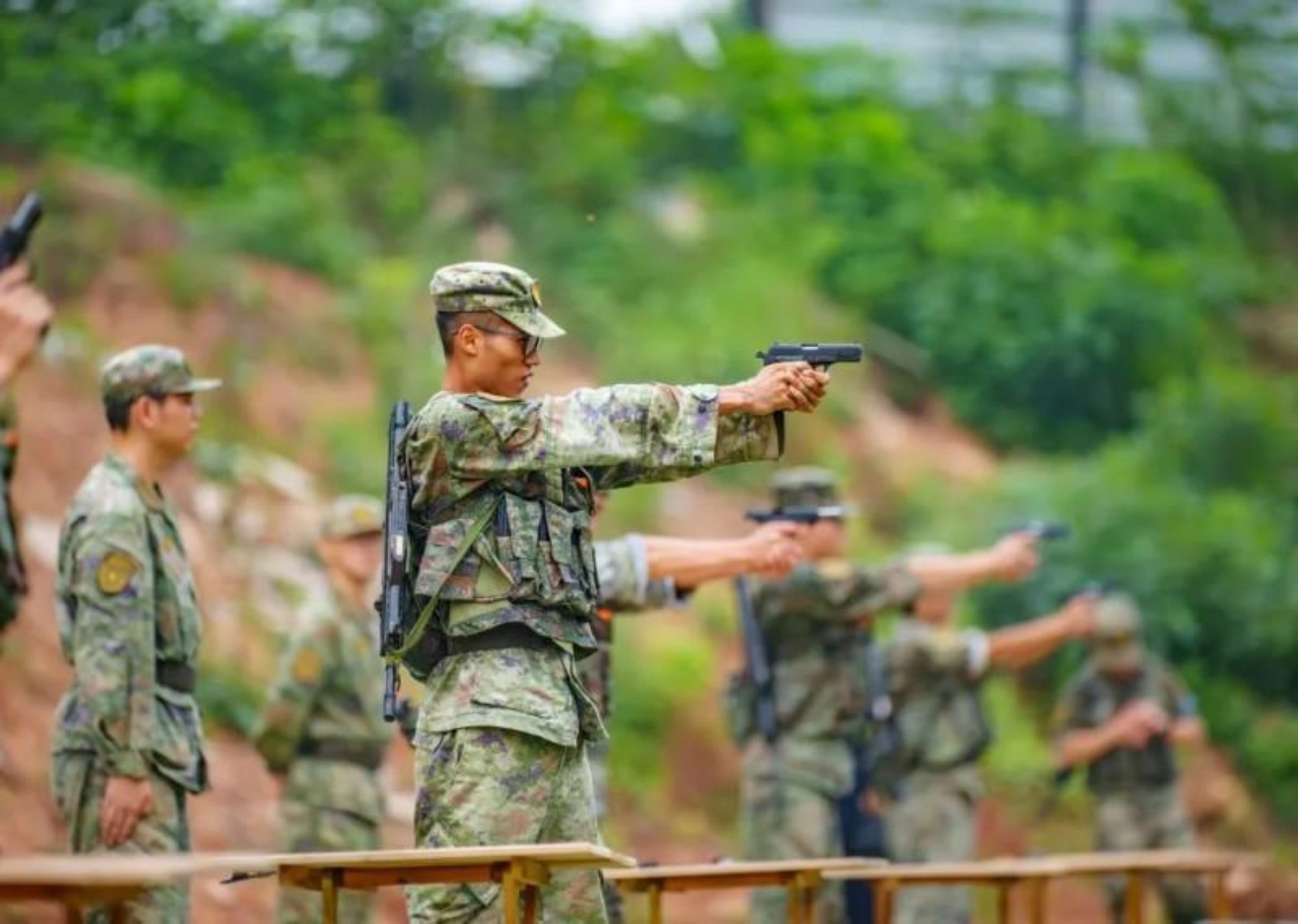 队员们进行手枪精度射击